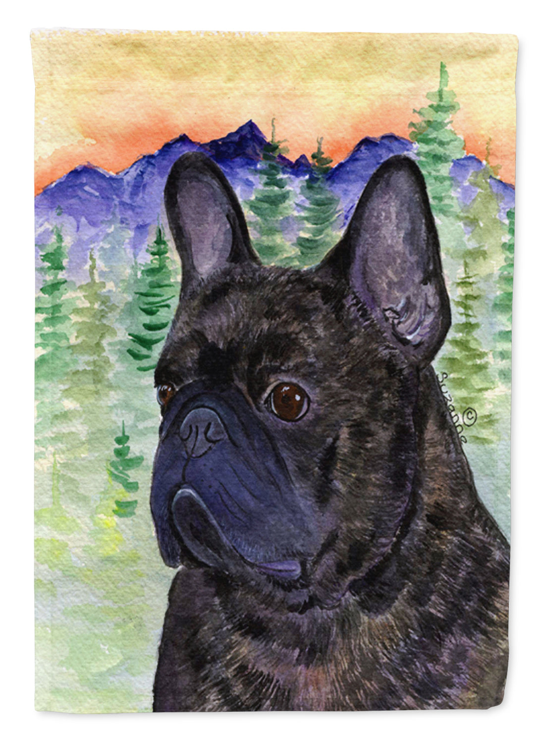 Decorate your space with our French Bulldog artwork on a Garden Flag. Enhance the beauty of your garden, patio, or yard with Caroline's Treasures Decorative Garden Flag, proudly made in the USA. Crafted from two pieces of thick, double-sided polyester fabric, this 2-ply garden flag is designed to withstand various weather conditions, making it water-resistant and weatherproof. Featuring correctly readable words on both sides, this garden flag offers a delightful visual experience from any angle. With its heavier weight, it stands out among other garden flags, ensuring stability and durability even in wind, rain, and snow. Measuring approximately 11 1/4 inches by 15 1/2 inches, this flag allows you to personalize your outdoor decor. It comes with a 1 1/2-inch sleeve sewn in, allowing easy attachment to any standard garden flag stand or garden size porch hanger (sold separately). Make a statement in your outdoor space with Caroline's Treasures Decorative Garden Flag, a vibrant and high-quality flag that adds color and personality to your surroundings. Proudly made in the USA, it's a symbol of quality craftsmanship and attention to detail.