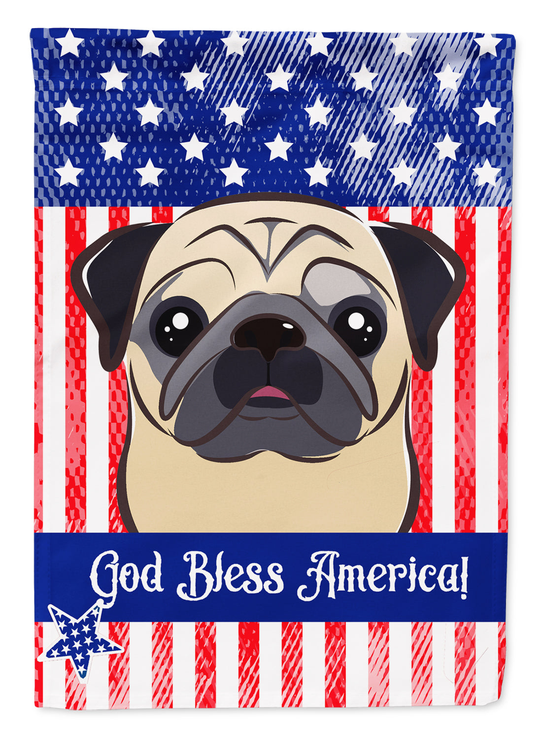 Decorate your space with our Pug artwork on a Garden Flag. Enhance the beauty of your garden, patio, or yard with Caroline's Treasures Decorative Garden Flag, proudly made in the USA. Crafted from two pieces of thick, double-sided polyester fabric, this 2-ply garden flag is designed to withstand various weather conditions, making it water-resistant and weatherproof. Featuring correctly readable words on both sides, this garden flag offers a delightful visual experience from any angle. With its heavier weight, it stands out among other garden flags, ensuring stability and durability even in wind, rain, and snow. Measuring approximately 11 1/4 inches by 15 1/2 inches, this flag allows you to personalize your outdoor decor. It comes with a 1 1/2-inch sleeve sewn in, allowing easy attachment to any standard garden flag stand or garden size porch hanger (sold separately). Make a statement in your outdoor space with Caroline's Treasures Decorative Garden Flag, a vibrant and high-quality flag that adds color and personality to your surroundings. Proudly made in the USA, it's a symbol of quality craftsmanship and attention to detail.