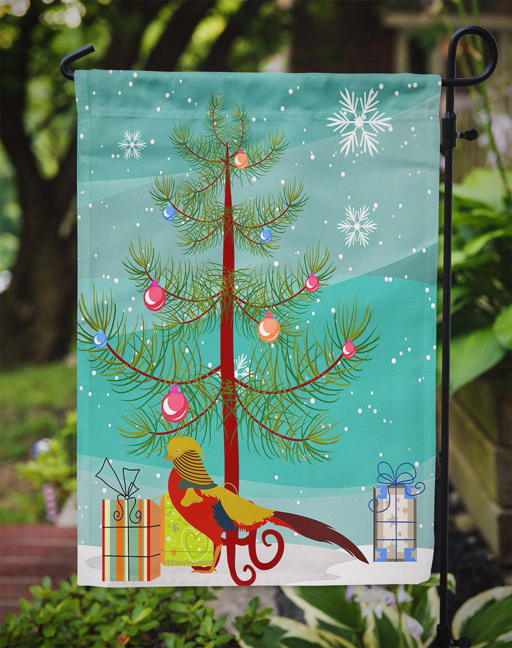 Decorate your space with our Christmas Golden or Chinese Pheasant artwork on a Garden Flag. Enhance the beauty of your garden, patio, or yard with Caroline's Treasures Decorative Garden Flag, proudly made in the USA. Crafted from two pieces of thick, double-sided polyester fabric, this 2-ply garden flag is designed to withstand various weather conditions, making it water-resistant and weatherproof. Featuring correctly readable words on both sides, this garden flag offers a delightful visual experience from any angle. With its heavier weight, it stands out among other garden flags, ensuring stability and durability even in wind, rain, and snow. Measuring approximately 11 1/4 inches by 15 1/2 inches, this flag allows you to personalize your outdoor decor. It comes with a 1 1/2-inch sleeve sewn in, allowing easy attachment to any standard garden flag stand or garden size porch hanger (sold separately). Make a statement in your outdoor space with Caroline's Treasures Decorative Garden Flag, a vibrant and high-quality flag that adds color and personality to your surroundings. Proudly made in the USA, it's a symbol of quality craftsmanship and attention to detail.
