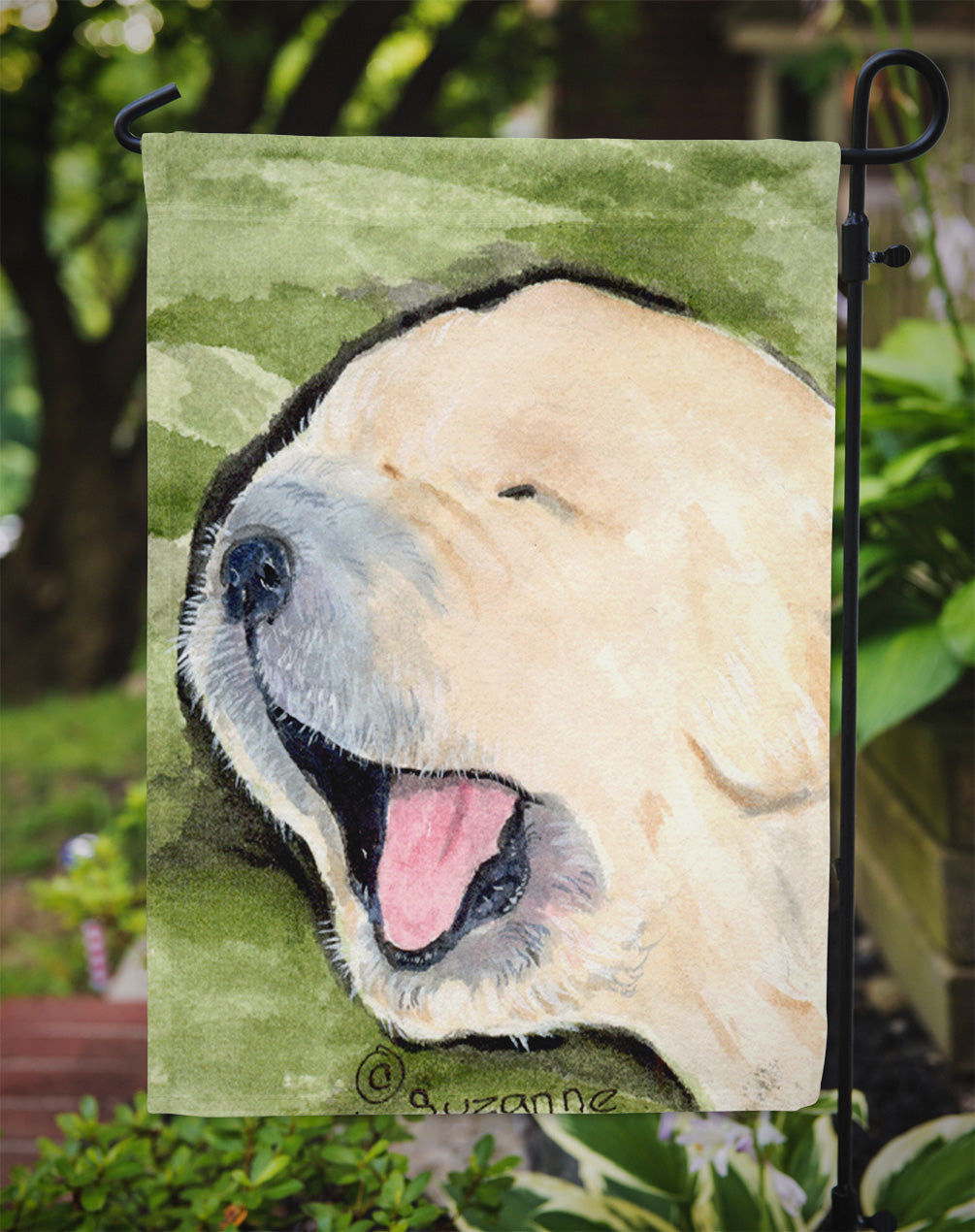 Decorate your space with our Golden Retriever artwork on a Garden Flag. Enhance the beauty of your garden, patio, or yard with Caroline's Treasures Decorative Garden Flag, proudly made in the USA. Crafted from two pieces of thick, double-sided polyester fabric, this 2-ply garden flag is designed to withstand various weather conditions, making it water-resistant and weatherproof. Featuring correctly readable words on both sides, this garden flag offers a delightful visual experience from any angle. With its heavier weight, it stands out among other garden flags, ensuring stability and durability even in wind, rain, and snow. Measuring approximately 11 1/4 inches by 15 1/2 inches, this flag allows you to personalize your outdoor decor. It comes with a 1 1/2-inch sleeve sewn in, allowing easy attachment to any standard garden flag stand or garden size porch hanger (sold separately). Make a statement in your outdoor space with Caroline's Treasures Decorative Garden Flag, a vibrant and high-quality flag that adds color and personality to your surroundings. Proudly made in the USA, it's a symbol of quality craftsmanship and attention to detail.