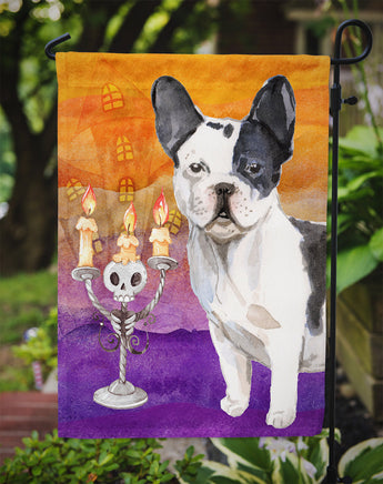 Decorate your space with our French Bulldog artwork on a Garden Flag. Enhance the beauty of your garden, patio, or yard with Caroline's Treasures Decorative Garden Flag, proudly made in the USA. Crafted from two pieces of thick, double-sided polyester fabric, this 2-ply garden flag is designed to withstand various weather conditions, making it water-resistant and weatherproof. Featuring correctly readable words on both sides, this garden flag offers a delightful visual experience from any angle. With its heavier weight, it stands out among other garden flags, ensuring stability and durability even in wind, rain, and snow. Measuring approximately 11 1/4 inches by 15 1/2 inches, this flag allows you to personalize your outdoor decor. It comes with a 1 1/2-inch sleeve sewn in, allowing easy attachment to any standard garden flag stand or garden size porch hanger (sold separately). Make a statement in your outdoor space with Caroline's Treasures Decorative Garden Flag, a vibrant and high-quality flag that adds color and personality to your surroundings. Proudly made in the USA, it's a symbol of quality craftsmanship and attention to detail.