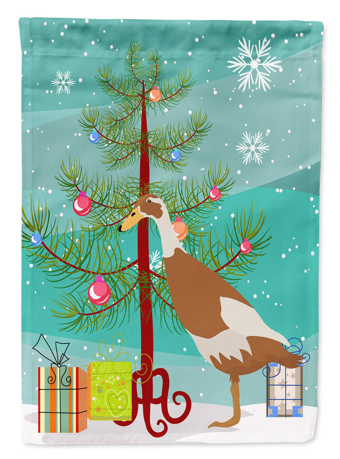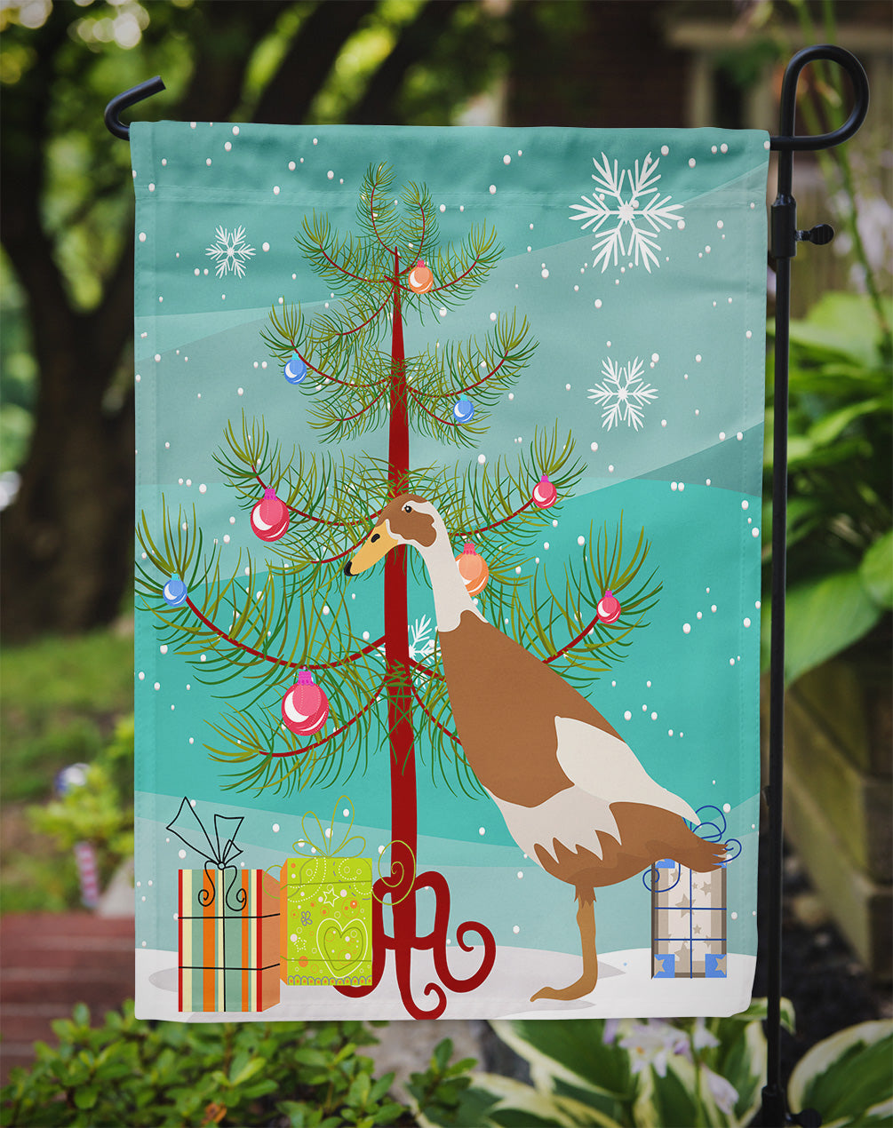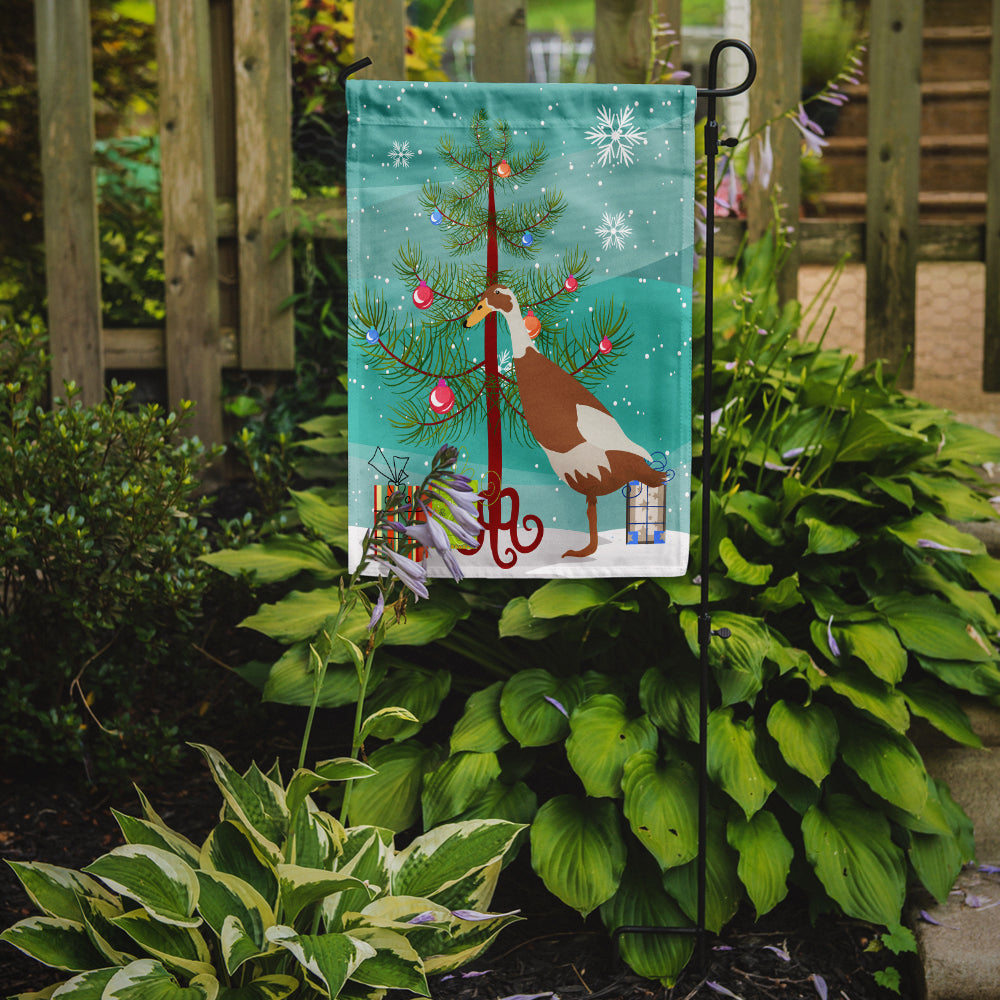 Decorate your space with our Christmas Indian Runner Duck artwork on a Garden Flag. Enhance the beauty of your garden, patio, or yard with Caroline's Treasures Decorative Garden Flag, proudly made in the USA. Crafted from two pieces of thick, double-sided polyester fabric, this 2-ply garden flag is designed to withstand various weather conditions, making it water-resistant and weatherproof. Featuring correctly readable words on both sides, this garden flag offers a delightful visual experience from any angle. With its heavier weight, it stands out among other garden flags, ensuring stability and durability even in wind, rain, and snow. Measuring approximately 11 1/4 inches by 15 1/2 inches, this flag allows you to personalize your outdoor decor. It comes with a 1 1/2-inch sleeve sewn in, allowing easy attachment to any standard garden flag stand or garden size porch hanger (sold separately). Make a statement in your outdoor space with Caroline's Treasures Decorative Garden Flag, a vibrant and high-quality flag that adds color and personality to your surroundings. Proudly made in the USA, it's a symbol of quality craftsmanship and attention to detail.