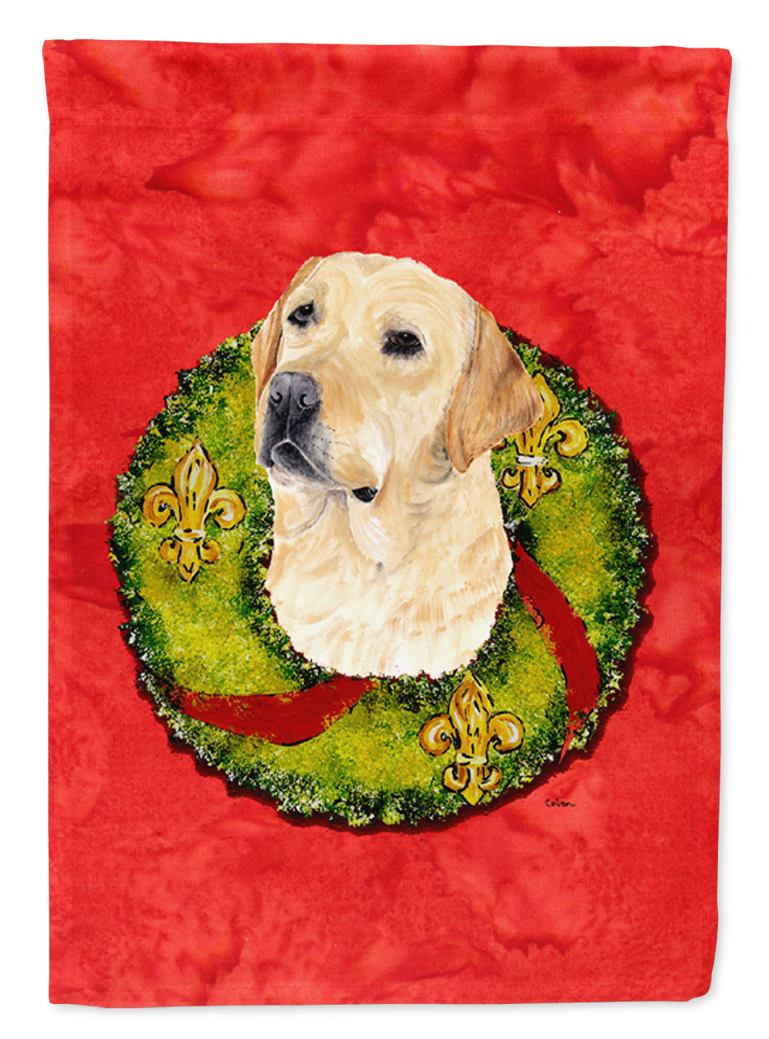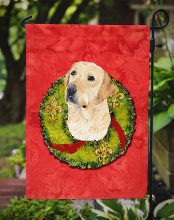 Decorate your space with our Christmas Labrador Retriever artwork on a Garden Flag. Enhance the beauty of your garden, patio, or yard with Caroline's Treasures Decorative Garden Flag, proudly made in the USA. Crafted from two pieces of thick, double-sided polyester fabric, this 2-ply garden flag is designed to withstand various weather conditions, making it water-resistant and weatherproof. Featuring correctly readable words on both sides, this garden flag offers a delightful visual experience from any angle. With its heavier weight, it stands out among other garden flags, ensuring stability and durability even in wind, rain, and snow. Measuring approximately 11 1/4 inches by 15 1/2 inches, this flag allows you to personalize your outdoor decor. It comes with a 1 1/2-inch sleeve sewn in, allowing easy attachment to any standard garden flag stand or garden size porch hanger (sold separately). Make a statement in your outdoor space with Caroline's Treasures Decorative Garden Flag, a vibrant and high-quality flag that adds color and personality to your surroundings. Proudly made in the USA, it's a symbol of quality craftsmanship and attention to detail.