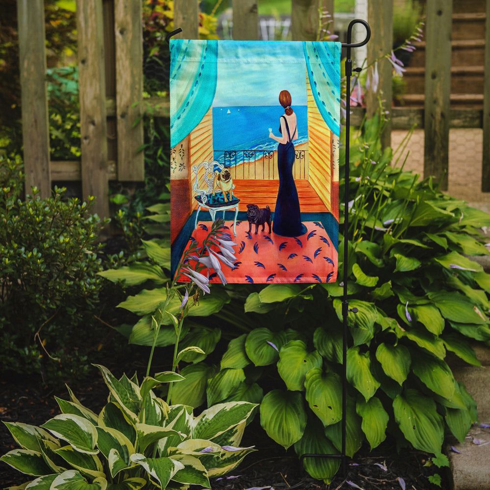 Decorate your space with our Pug artwork on a Garden Flag. Enhance the beauty of your garden, patio, or yard with Caroline's Treasures Decorative Garden Flag, proudly made in the USA. Crafted from two pieces of thick, double-sided polyester fabric, this 2-ply garden flag is designed to withstand various weather conditions, making it water-resistant and weatherproof. Featuring correctly readable words on both sides, this garden flag offers a delightful visual experience from any angle. With its heavier weight, it stands out among other garden flags, ensuring stability and durability even in wind, rain, and snow. Measuring approximately 11 1/4 inches by 15 1/2 inches, this flag allows you to personalize your outdoor decor. It comes with a 1 1/2-inch sleeve sewn in, allowing easy attachment to any standard garden flag stand or garden size porch hanger (sold separately). Make a statement in your outdoor space with Caroline's Treasures Decorative Garden Flag, a vibrant and high-quality flag that adds color and personality to your surroundings. Proudly made in the USA, it's a symbol of quality craftsmanship and attention to detail.