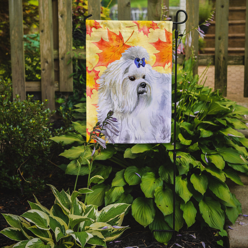 Decorate your space with our Maltese artwork on a Garden Flag. Enhance the beauty of your garden, patio, or yard with Caroline's Treasures Decorative Garden Flag, proudly made in the USA. Crafted from two pieces of thick, double-sided polyester fabric, this 2-ply garden flag is designed to withstand various weather conditions, making it water-resistant and weatherproof. Featuring correctly readable words on both sides, this garden flag offers a delightful visual experience from any angle. With its heavier weight, it stands out among other garden flags, ensuring stability and durability even in wind, rain, and snow. Measuring approximately 11 1/4 inches by 15 1/2 inches, this flag allows you to personalize your outdoor decor. It comes with a 1 1/2-inch sleeve sewn in, allowing easy attachment to any standard garden flag stand or garden size porch hanger (sold separately). Make a statement in your outdoor space with Caroline's Treasures Decorative Garden Flag, a vibrant and high-quality flag that adds color and personality to your surroundings. Proudly made in the USA, it's a symbol of quality craftsmanship and attention to detail.