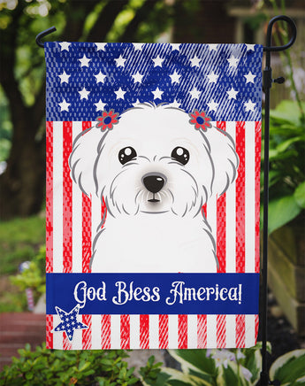 Decorate your space with our Maltese artwork on a Garden Flag. Enhance the beauty of your garden, patio, or yard with Caroline's Treasures Decorative Garden Flag, proudly made in the USA. Crafted from two pieces of thick, double-sided polyester fabric, this 2-ply garden flag is designed to withstand various weather conditions, making it water-resistant and weatherproof. Featuring correctly readable words on both sides, this garden flag offers a delightful visual experience from any angle. With its heavier weight, it stands out among other garden flags, ensuring stability and durability even in wind, rain, and snow. Measuring approximately 11 1/4 inches by 15 1/2 inches, this flag allows you to personalize your outdoor decor. It comes with a 1 1/2-inch sleeve sewn in, allowing easy attachment to any standard garden flag stand or garden size porch hanger (sold separately). Make a statement in your outdoor space with Caroline's Treasures Decorative Garden Flag, a vibrant and high-quality flag that adds color and personality to your surroundings. Proudly made in the USA, it's a symbol of quality craftsmanship and attention to detail.