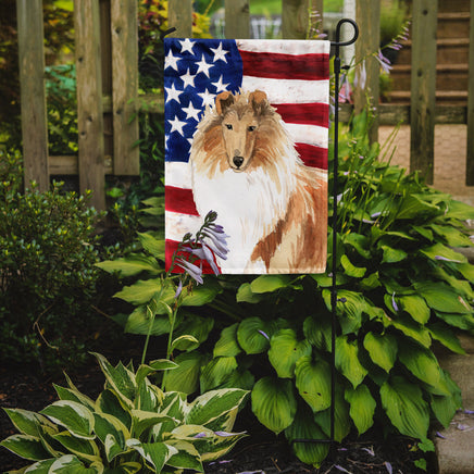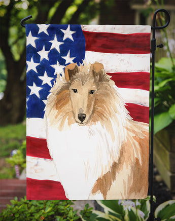 Patriotic USA Rough Collie Flag Garden Size CK1719GF