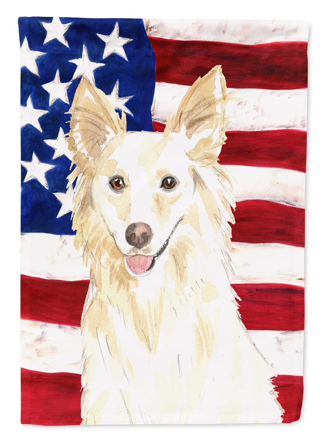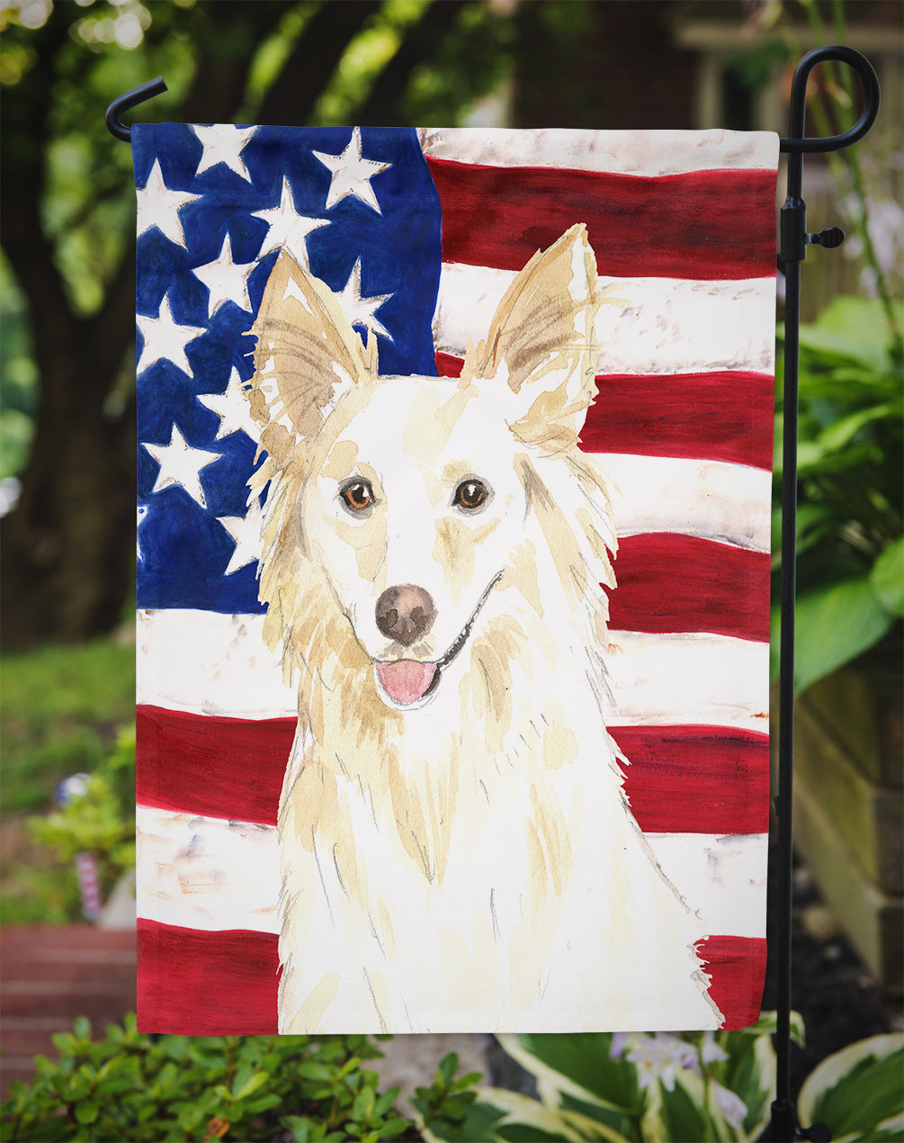 Patriotic USA White Collie Flag Garden Size CK1708GF