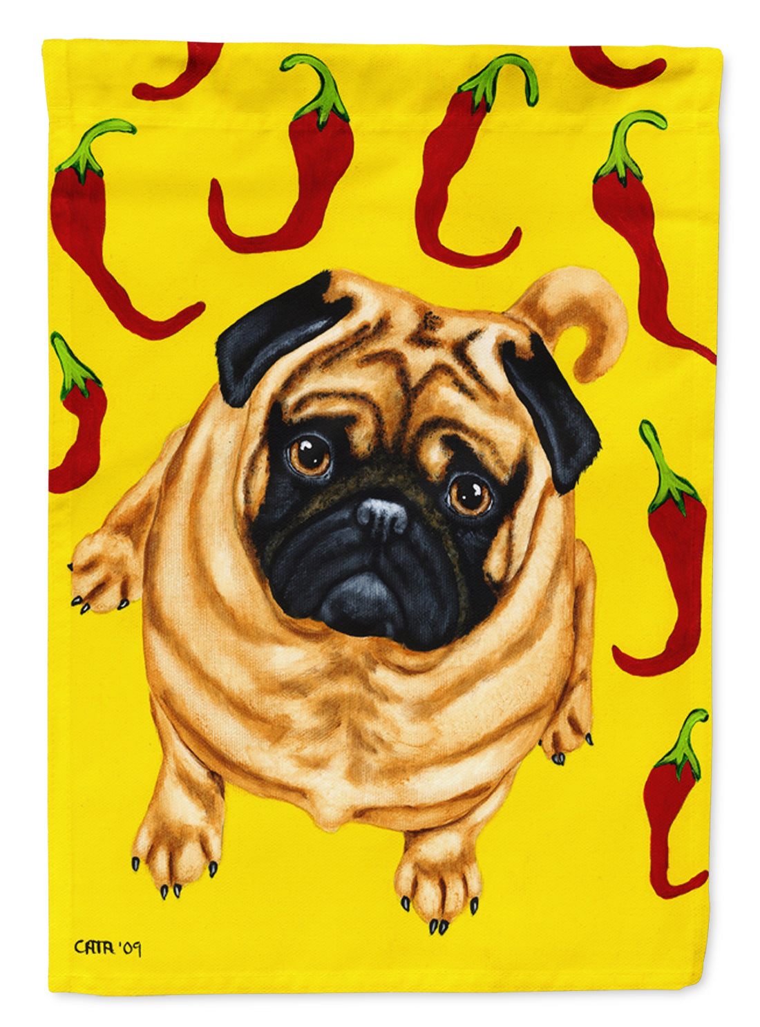 Decorate your space with our Pug artwork on a Garden Flag. Enhance the beauty of your garden, patio, or yard with Caroline's Treasures Decorative Garden Flag, proudly made in the USA. Crafted from two pieces of thick, double-sided polyester fabric, this 2-ply garden flag is designed to withstand various weather conditions, making it water-resistant and weatherproof. Featuring correctly readable words on both sides, this garden flag offers a delightful visual experience from any angle. With its heavier weight, it stands out among other garden flags, ensuring stability and durability even in wind, rain, and snow. Measuring approximately 11 1/4 inches by 15 1/2 inches, this flag allows you to personalize your outdoor decor. It comes with a 1 1/2-inch sleeve sewn in, allowing easy attachment to any standard garden flag stand or garden size porch hanger (sold separately). Make a statement in your outdoor space with Caroline's Treasures Decorative Garden Flag, a vibrant and high-quality flag that adds color and personality to your surroundings. Proudly made in the USA, it's a symbol of quality craftsmanship and attention to detail.