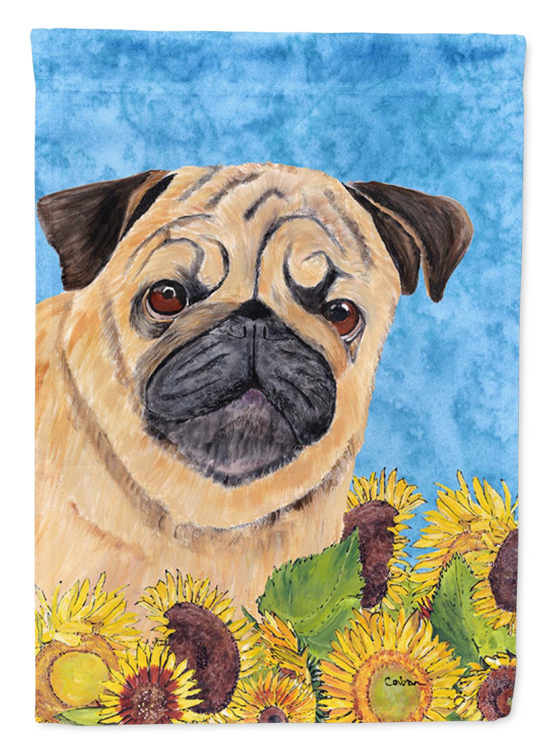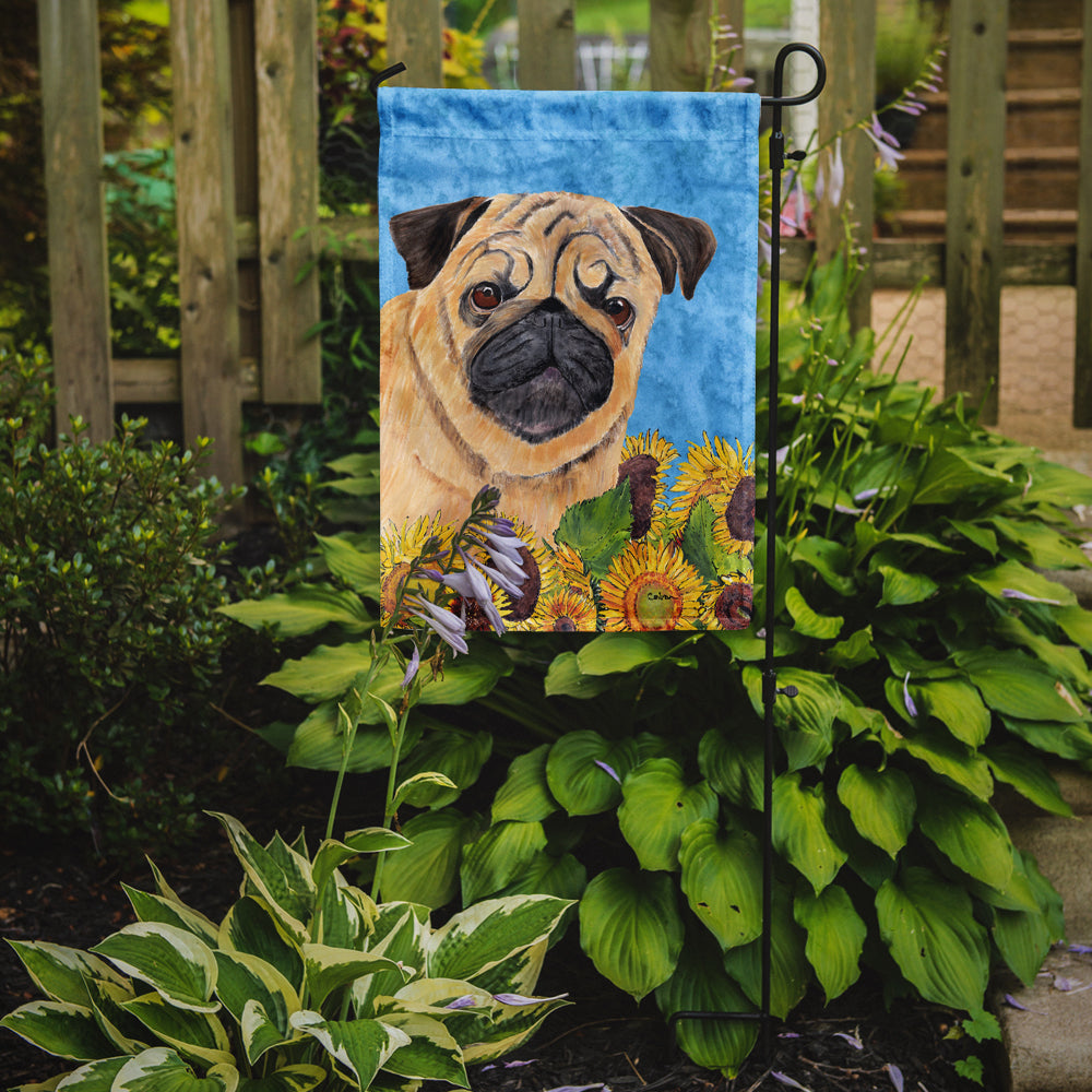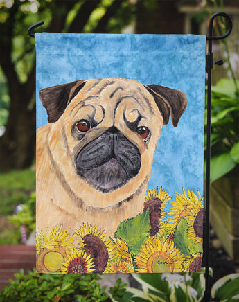 Decorate your space with our Pug artwork on a Garden Flag. Bring a bit of Summer into your home with a Summer Garden Flag. Enhance the beauty of your garden, patio, or yard with Caroline's Treasures Decorative Garden Flag, proudly made in the USA. Crafted from two pieces of thick, double-sided polyester fabric, this 2-ply garden flag is designed to withstand various weather conditions, making it water-resistant and weatherproof. Featuring correctly readable words on both sides, this garden flag offers a delightful visual experience from any angle. With its heavier weight, it stands out among other garden flags, ensuring stability and durability even in wind, rain, and snow. Measuring approximately 11 1/4 inches by 15 1/2 inches, this flag allows you to personalize your outdoor decor. It comes with a 1 1/2-inch sleeve sewn in, allowing easy attachment to any standard garden flag stand or garden size porch hanger (sold separately). Make a statement in your outdoor space with Caroline's Treasures Decorative Garden Flag, a vibrant and high-quality flag that adds color and personality to your surroundings. Proudly made in the USA, it's a symbol of quality craftsmanship and attention to detail.