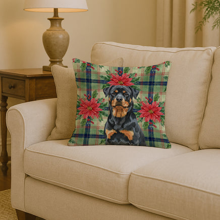 Throw Pillow featuring breed specific Rottweiler artwork. Celebrate Christmas with this Christmas Pillow. Add a touch of vibrancy and comfort to your outdoor seating with Caroline's Treasures Fabric Decorative Pillow. Approximately 14 inches by 14 inches, this outdoor pillow is crafted to elevate the appeal of your patio furniture, infusing it with vivid color and artistic flair. The pillow includes a 100% Polyester Fabric sham filled with a quality pillow form to provide superior comfort. Innovatively made from this Caroline's Treasures brand new material, specifically woven for its water resistance, this pillow is designed for durability. The soft canvas fabric offers versatility in use, fit for your indoor couch or your outdoor patio, porch, or veranda. The fabric is dyed with colorfast dyes built for resilience against weather conditions, ensuring the pillow retains its beauty over time. Constructed by sewing three fabric pieces to create a sham, the polyester insert is then nestled inside to form the pillow, resulting in an overstuffed pillow that maintains its shape. Both the sham and the pillow insert are proudly made in the United States. As the pillows are handcrafted, there may be minor variations in size, further enhancing their unique charm. Experience comfort in style with Caroline's Treasures Fabric Decorative Pillow.