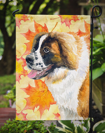 Decorate your space with our Saint Bernard artwork on a Garden Flag. Enhance the beauty of your garden, patio, or yard with Caroline's Treasures Decorative Garden Flag, proudly made in the USA. Crafted from two pieces of thick, double-sided polyester fabric, this 2-ply garden flag is designed to withstand various weather conditions, making it water-resistant and weatherproof. Featuring correctly readable words on both sides, this garden flag offers a delightful visual experience from any angle. With its heavier weight, it stands out among other garden flags, ensuring stability and durability even in wind, rain, and snow. Measuring approximately 11 1/4 inches by 15 1/2 inches, this flag allows you to personalize your outdoor decor. It comes with a 1 1/2-inch sleeve sewn in, allowing easy attachment to any standard garden flag stand or garden size porch hanger (sold separately). Make a statement in your outdoor space with Caroline's Treasures Decorative Garden Flag, a vibrant and high-quality flag that adds color and personality to your surroundings. Proudly made in the USA, it's a symbol of quality craftsmanship and attention to detail.