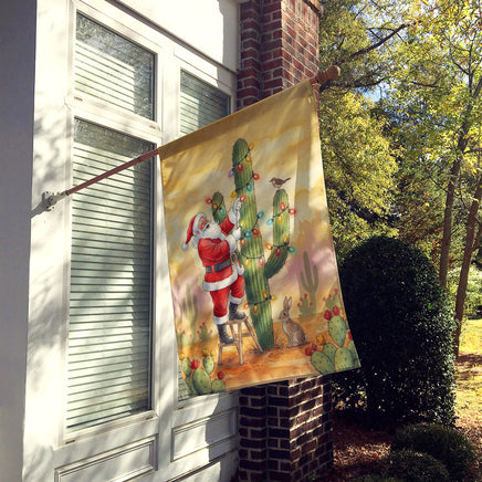 Santa Claus Decorating a Cactus Christmas House Flag