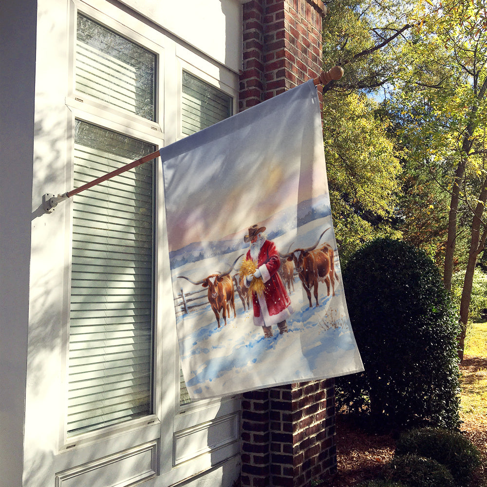 Santa Claus Feeding the Longhorns Christmas House Flag