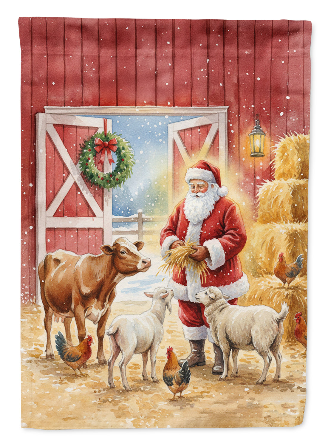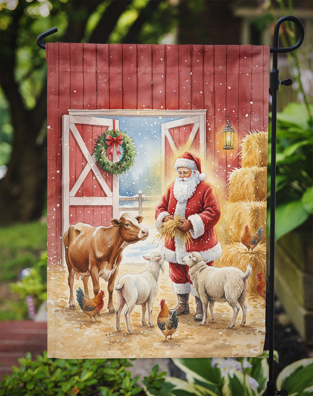 Santa Claus in the Barn with Animals Christmas Garden Flag