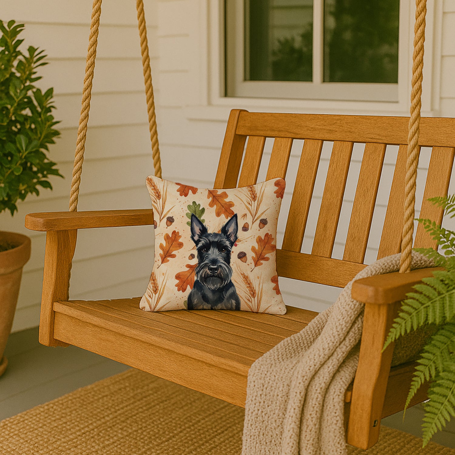 Throw Pillow featuring breed specific Scottish Terrier artwork. Celebrate Thanksgiving with this Thanksgiving Pillow. Add a touch of vibrancy and comfort to your outdoor seating with Caroline's Treasures Fabric Decorative Pillow. Approximately 14 inches by 14 inches, this outdoor pillow is crafted to elevate the appeal of your patio furniture, infusing it with vivid color and artistic flair. The pillow includes a 100% Polyester Fabric sham filled with a quality pillow form to provide superior comfort. Innovatively made from this Caroline's Treasures brand new material, specifically woven for its water resistance, this pillow is designed for durability. The soft canvas fabric offers versatility in use, fit for your indoor couch or your outdoor patio, porch, or veranda. The fabric is dyed with colorfast dyes built for resilience against weather conditions, ensuring the pillow retains its beauty over time. Constructed by sewing three fabric pieces to create a sham, the polyester insert is then nestled inside to form the pillow, resulting in an overstuffed pillow that maintains its shape. Both the sham and the pillow insert are proudly made in the United States. As the pillows are handcrafted, there may be minor variations in size, further enhancing their unique charm. Experience comfort in style with Caroline's Treasures Fabric Decorative Pillow.