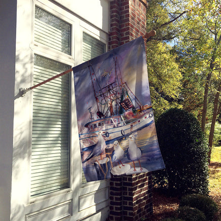 Sea Gulls and shrimp boats Flag Canvas House Size JMK1196CHF
