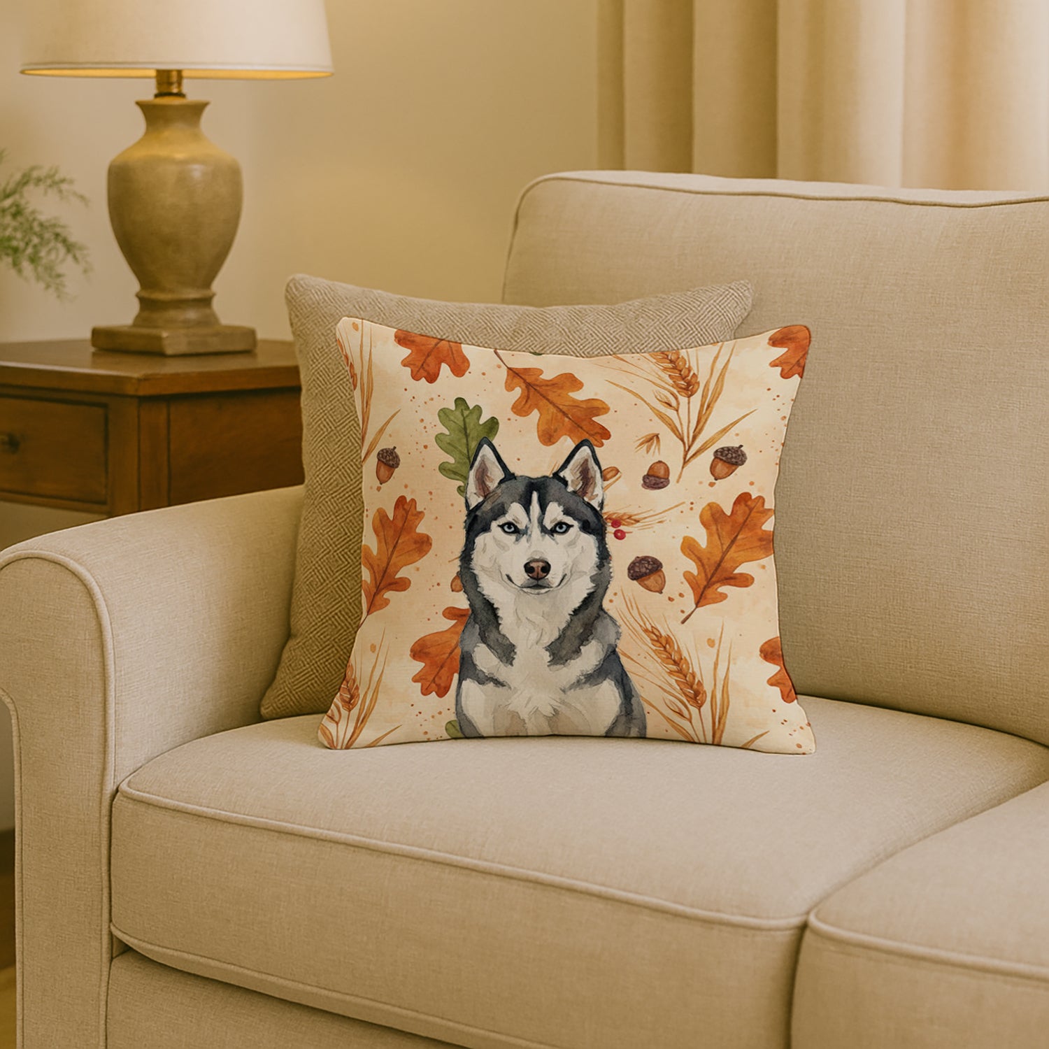 Throw Pillow featuring breed specific Siberian Husky artwork. Celebrate Thanksgiving with this Thanksgiving Pillow. Revitalize your outdoor or indoor living space with Caroline's Treasures 18" x 18" Fabric Decorative Pillow. With a generously sized dimension of approximately 18 inches by 18 inches, this pillow makes a comfortable and aesthetic addition to any seating area. Made from a unique, water-resistant material developed by Caroline's Treasures, the pillow sham is 100% polyester fabric that's durable and ready to weather any condition. Its vibrant, full-color artwork will not fade over time as it is dyed with color-fast dyes. Whether you place it on your patio furniture, porch, veranda, or indoor couch, its soft canvas fabric ensures a cozy experience. The pillow is handcrafted in the United States, featuring a sham created from three pieces of fabric and a polyester insert for enduring shape and overstuffed comfort. Despite being robustly built to endure the outdoors, it is as soft and snug as your favorite indoor cushions. Please note, as all this Caroline's Treasures pillows are handmade, sizes may vary slightly, adding to the charm of this unique decorative item.