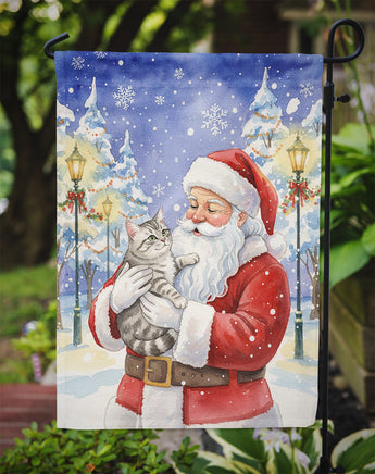 Silver Mackerel Tabby Cat with Santa Claus Garden Flag