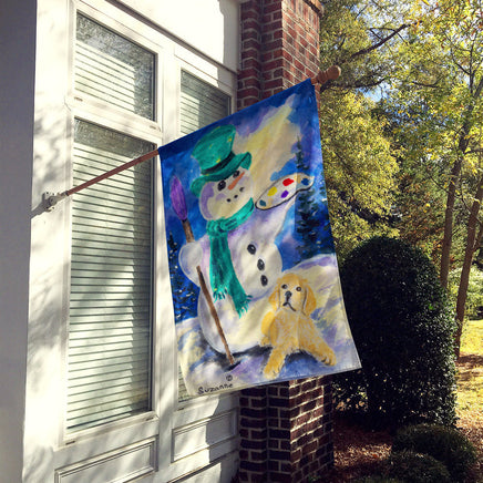 Snowman with Golden Retriever Flag Canvas House Size