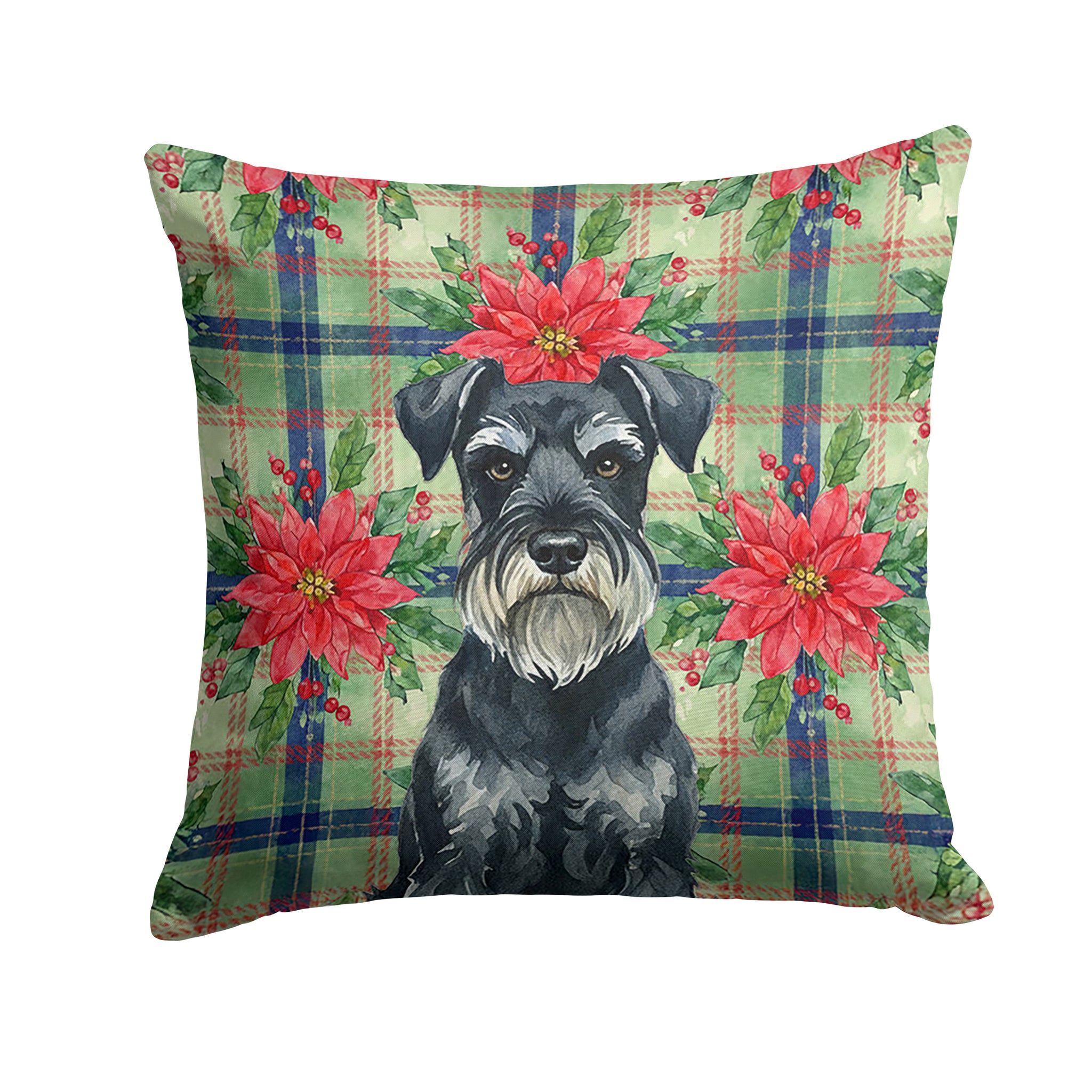 Standard Schnauzer Christmas PoinsettIas Throw Pillow