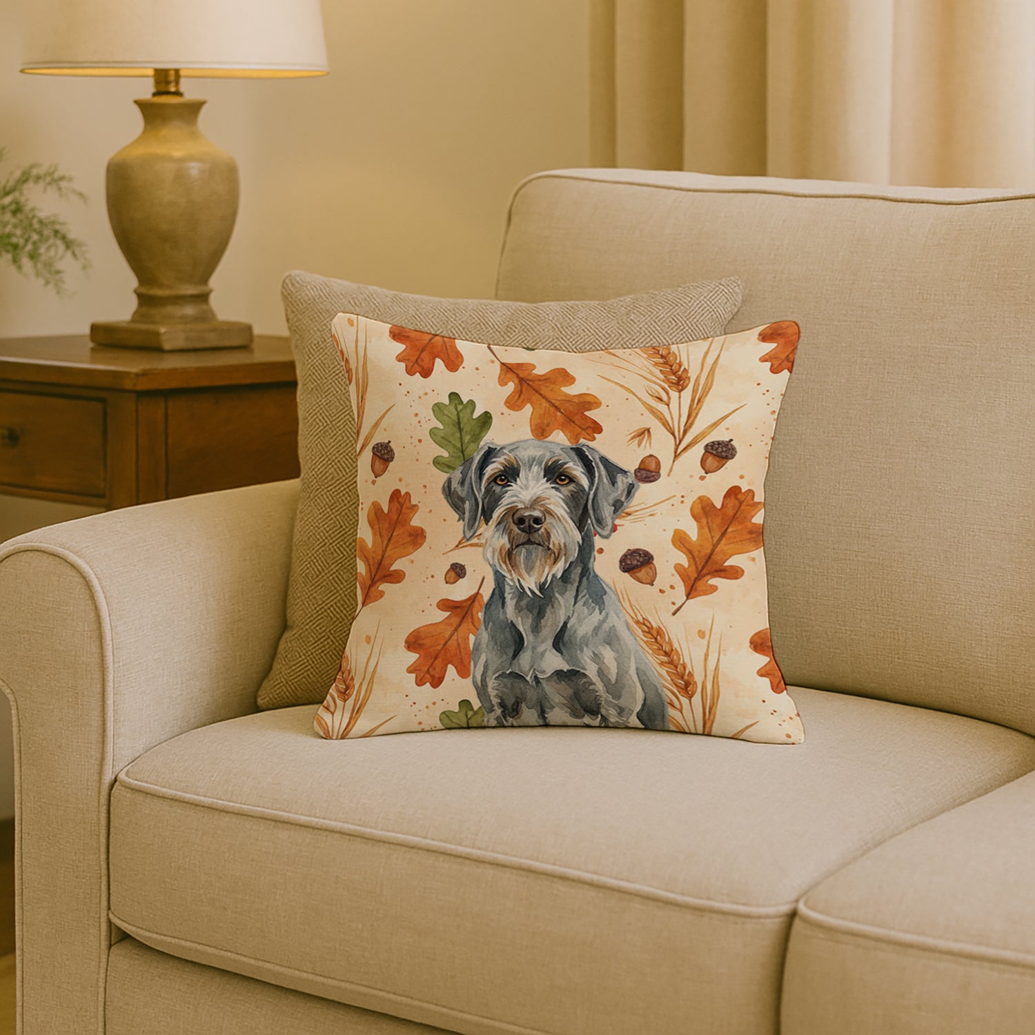 Throw Pillow featuring breed specific Wirehaired Pointing Griffon artwork. Celebrate Thanksgiving with this Thanksgiving Pillow. Revitalize your outdoor or indoor living space with Caroline's Treasures 18" x 18" Fabric Decorative Pillow. With a generously sized dimension of approximately 18 inches by 18 inches, this pillow makes a comfortable and aesthetic addition to any seating area. Made from a unique, water-resistant material developed by Caroline's Treasures, the pillow sham is 100% polyester fabric that's durable and ready to weather any condition. Its vibrant, full-color artwork will not fade over time as it is dyed with color-fast dyes. Whether you place it on your patio furniture, porch, veranda, or indoor couch, its soft canvas fabric ensures a cozy experience. The pillow is handcrafted in the United States, featuring a sham created from three pieces of fabric and a polyester insert for enduring shape and overstuffed comfort. Despite being robustly built to endure the outdoors, it is as soft and snug as your favorite indoor cushions. Please note, as all this Caroline's Treasures pillows are handmade, sizes may vary slightly, adding to the charm of this unique decorative item.