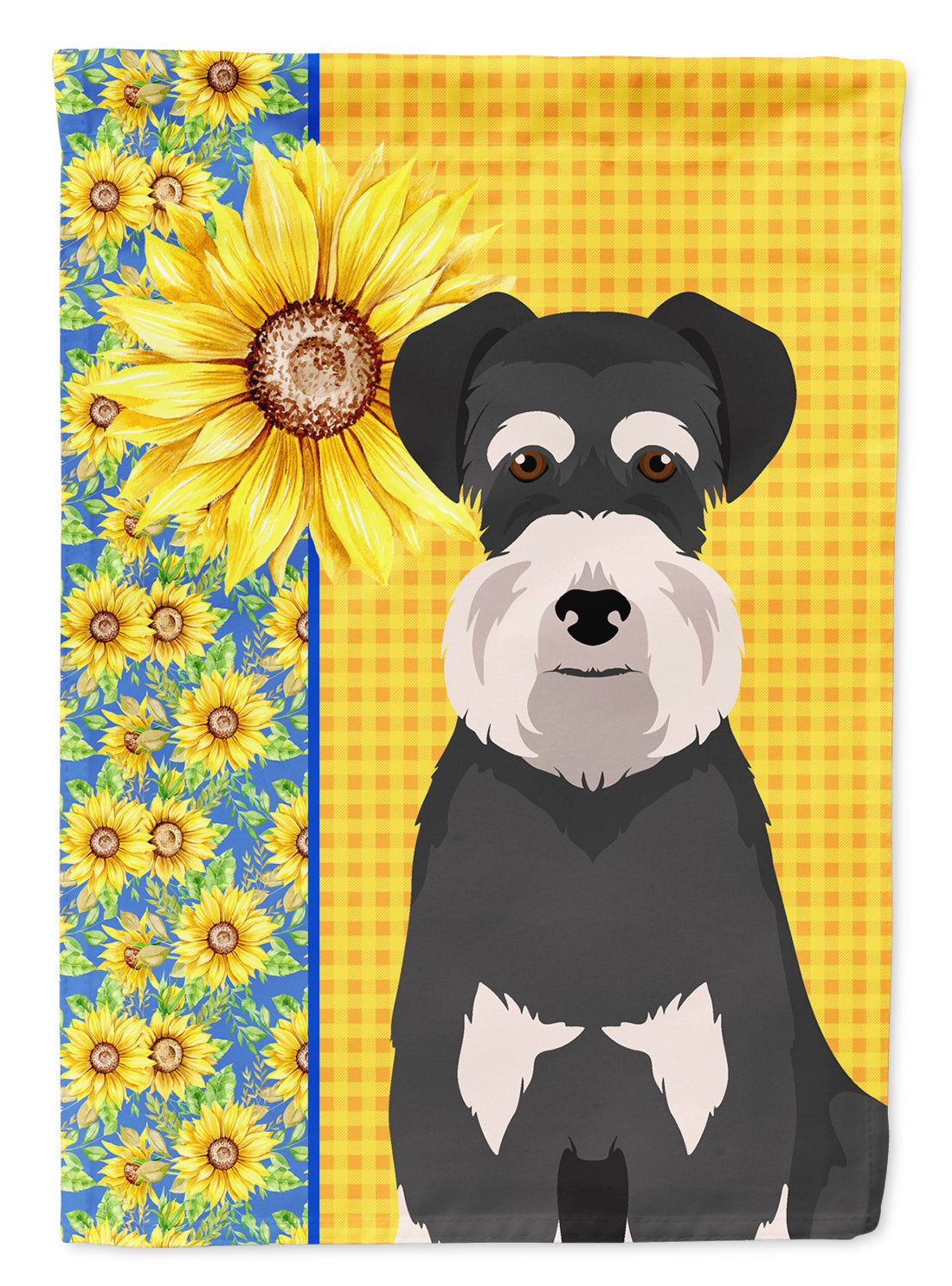 Summer Sunflowers Black and Silver Natural Ears Schnauzer Flag Garden Size