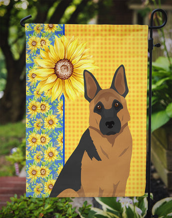Summer Sunflowers Black and Tan German Shepherd Flag Garden Size