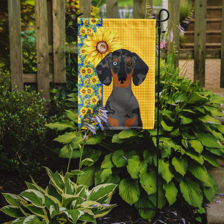 Decorate your space with Caroline's Treasures Dachshund artwork on a Garden Flag. Bring a bit of Summer into your home with a Summer Garden Flag. Enhance the beauty of your garden, patio, or yard with Caroline's Treasures Decorative Garden Flag, proudly made in the USA. Crafted from two pieces of thick, double-sided polyester fabric, this 2-ply garden flag is designed to withstand various weather conditions, making it water-resistant and weatherproof. Featuring correctly readable words on both sides, this garden flag offers a delightful visual experience from any angle. With its heavier weight, it stands out among other garden flags, ensuring stability and durability even in wind, rain, and snow. Measuring approximately 11 1/4 inches by 15 1/2 inches, this flag allows you to personalize your outdoor decor. It comes with a 1 1/2-inch sleeve sewn in, allowing easy attachment to any standard garden flag stand or garden size porch hanger (sold separately). Make a statement in your outdoor space with Caroline's Treasures Decorative Garden Flag, a vibrant and high-quality flag that adds color and personality to your surroundings. Proudly made in the USA, it's a symbol of quality craftsmanship and attention to detail.