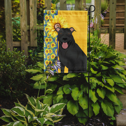 Decorate your space with Caroline's Treasures Pit Bull Terrier artwork on a Garden Flag. Bring a bit of Summer into your home with a Summer Garden Flag. Enhance the beauty of your garden, patio, or yard with Caroline's Treasures Decorative Garden Flag, proudly made in the USA. Crafted from two pieces of thick, double-sided polyester fabric, this 2-ply garden flag is designed to withstand various weather conditions, making it water-resistant and weatherproof. Featuring correctly readable words on both sides, this garden flag offers a delightful visual experience from any angle. With its heavier weight, it stands out among other garden flags, ensuring stability and durability even in wind, rain, and snow. Measuring approximately 11 1/4 inches by 15 1/2 inches, this flag allows you to personalize your outdoor decor. It comes with a 1 1/2-inch sleeve sewn in, allowing easy attachment to any standard garden flag stand or garden size porch hanger (sold separately). Make a statement in your outdoor space with Caroline's Treasures Decorative Garden Flag, a vibrant and high-quality flag that adds color and personality to your surroundings. Proudly made in the USA, it's a symbol of quality craftsmanship and attention to detail.