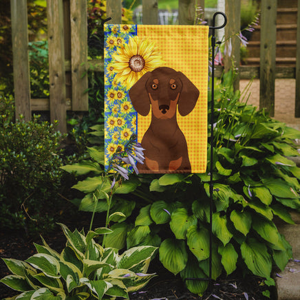 Summer Sunflowers Chocolate and Tan Dachshund Flag Garden Size