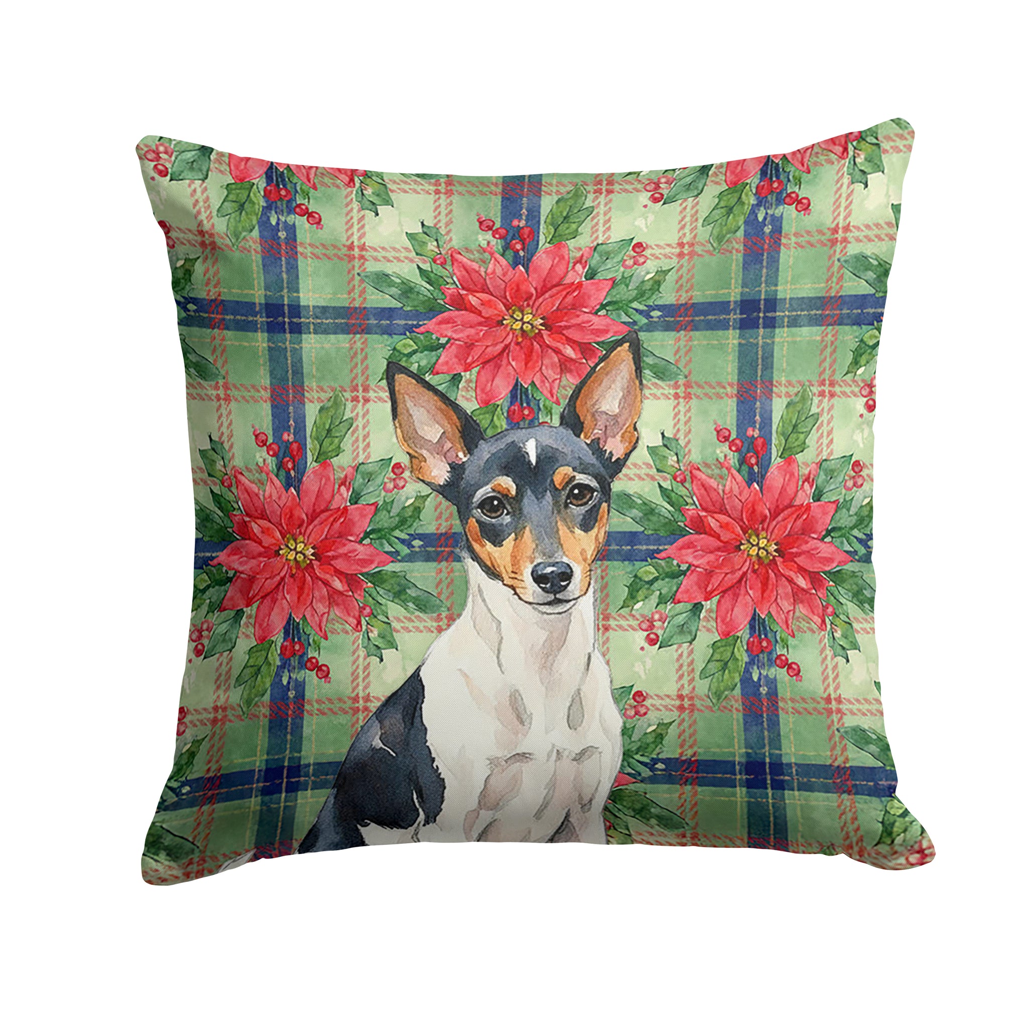Throw Pillow featuring breed specific Toy Fox Terrier artwork. Celebrate Christmas with this Christmas Pillow. Add a touch of vibrancy and comfort to your outdoor seating with Caroline's Treasures Fabric Decorative Pillow. Approximately 14 inches by 14 inches, this outdoor pillow is crafted to elevate the appeal of your patio furniture, infusing it with vivid color and artistic flair. The pillow includes a 100% Polyester Fabric sham filled with a quality pillow form to provide superior comfort. Innovatively made from this Caroline's Treasures brand new material, specifically woven for its water resistance, this pillow is designed for durability. The soft canvas fabric offers versatility in use, fit for your indoor couch or your outdoor patio, porch, or veranda. The fabric is dyed with colorfast dyes built for resilience against weather conditions, ensuring the pillow retains its beauty over time. Constructed by sewing three fabric pieces to create a sham, the polyester insert is then nestled inside to form the pillow, resulting in an overstuffed pillow that maintains its shape. Both the sham and the pillow insert are proudly made in the United States. As the pillows are handcrafted, there may be minor variations in size, further enhancing their unique charm. Experience comfort in style with Caroline's Treasures Fabric Decorative Pillow.