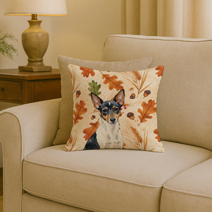 Throw Pillow featuring breed specific Toy Fox Terrier artwork. Celebrate Thanksgiving with this Thanksgiving Pillow. Revitalize your outdoor or indoor living space with Caroline's Treasures 18" x 18" Fabric Decorative Pillow. With a generously sized dimension of approximately 18 inches by 18 inches, this pillow makes a comfortable and aesthetic addition to any seating area. Made from a unique, water-resistant material developed by Caroline's Treasures, the pillow sham is 100% polyester fabric that's durable and ready to weather any condition. Its vibrant, full-color artwork will not fade over time as it is dyed with color-fast dyes. Whether you place it on your patio furniture, porch, veranda, or indoor couch, its soft canvas fabric ensures a cozy experience. The pillow is handcrafted in the United States, featuring a sham created from three pieces of fabric and a polyester insert for enduring shape and overstuffed comfort. Despite being robustly built to endure the outdoors, it is as soft and snug as your favorite indoor cushions. Please note, as all this Caroline's Treasures pillows are handmade, sizes may vary slightly, adding to the charm of this unique decorative item.