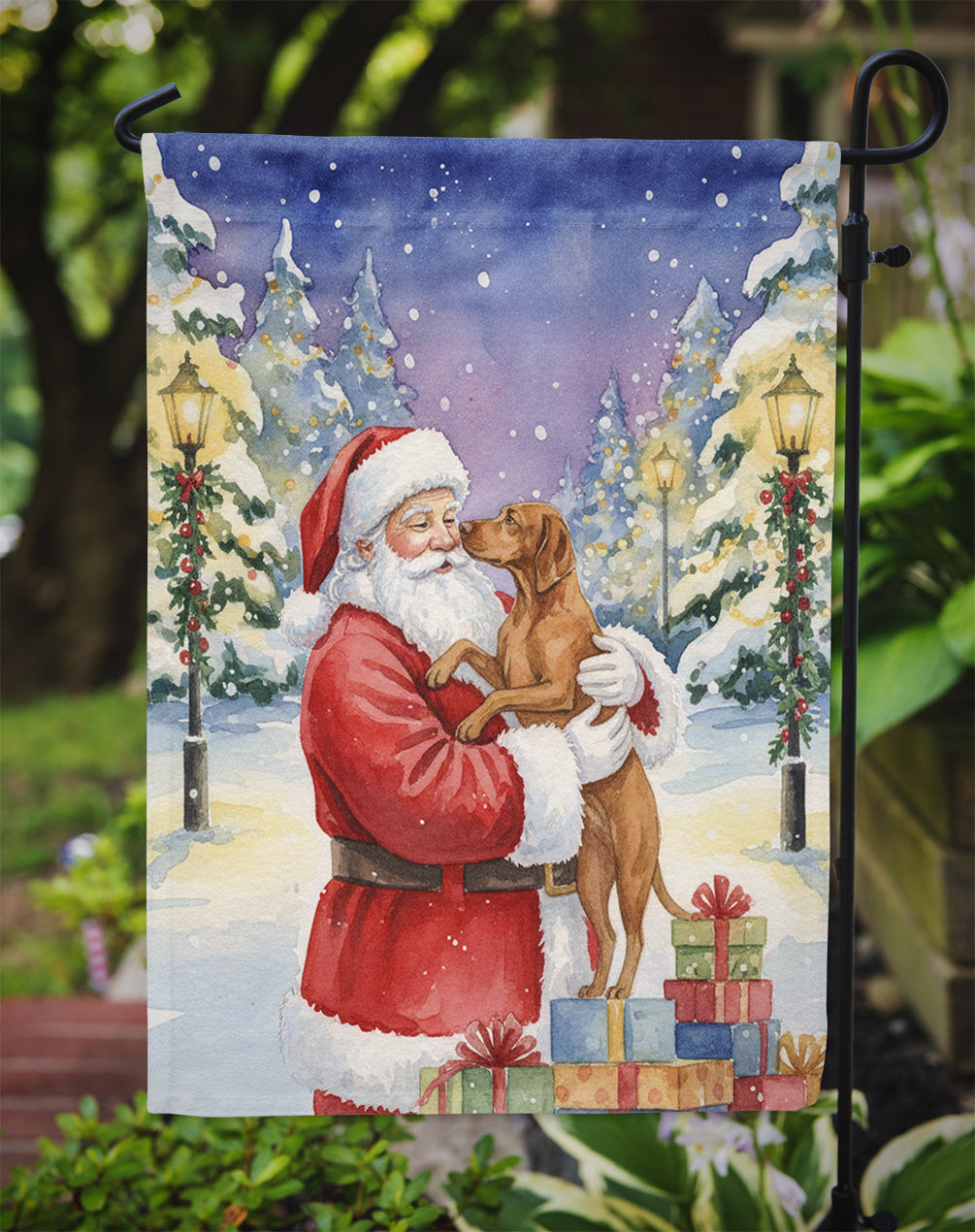 Vizsla with Santa Claus Garden Flag