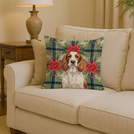 Welsh Springer Spaniel Christmas PoinsettIas Throw Pillow