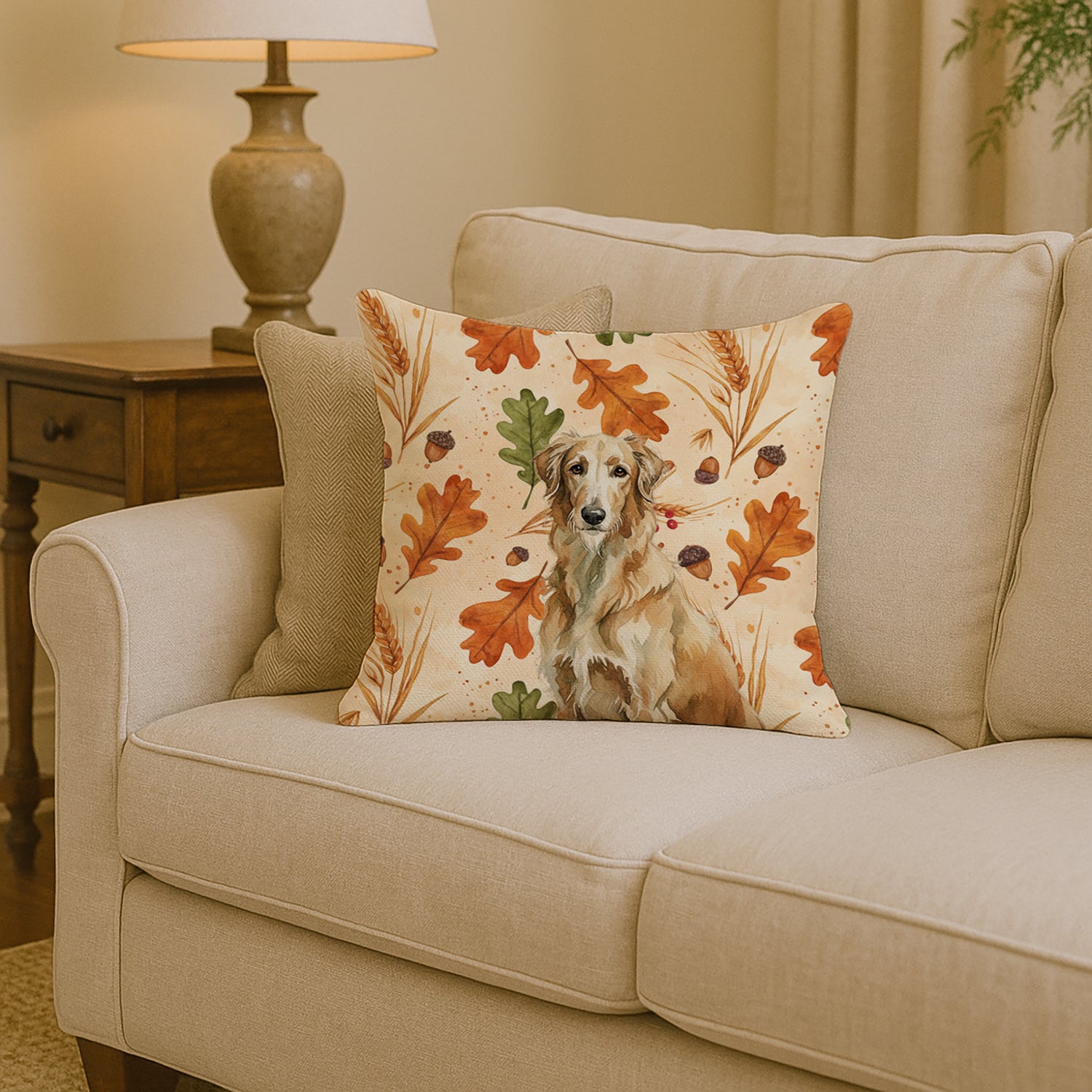 Throw Pillow featuring breed specific Scottish Deerhound artwork. Celebrate Thanksgiving with this Thanksgiving Pillow. Add a touch of vibrancy and comfort to your outdoor seating with Caroline's Treasures Fabric Decorative Pillow. Approximately 14 inches by 14 inches, this outdoor pillow is crafted to elevate the appeal of your patio furniture, infusing it with vivid color and artistic flair. The pillow includes a 100% Polyester Fabric sham filled with a quality pillow form to provide superior comfort. Innovatively made from this Caroline's Treasures brand new material, specifically woven for its water resistance, this pillow is designed for durability. The soft canvas fabric offers versatility in use, fit for your indoor couch or your outdoor patio, porch, or veranda. The fabric is dyed with colorfast dyes built for resilience against weather conditions, ensuring the pillow retains its beauty over time. Constructed by sewing three fabric pieces to create a sham, the polyester insert is then nestled inside to form the pillow, resulting in an overstuffed pillow that maintains its shape. Both the sham and the pillow insert are proudly made in the United States. As the pillows are handcrafted, there may be minor variations in size, further enhancing their unique charm. Experience comfort in style with Caroline's Treasures Fabric Decorative Pillow.