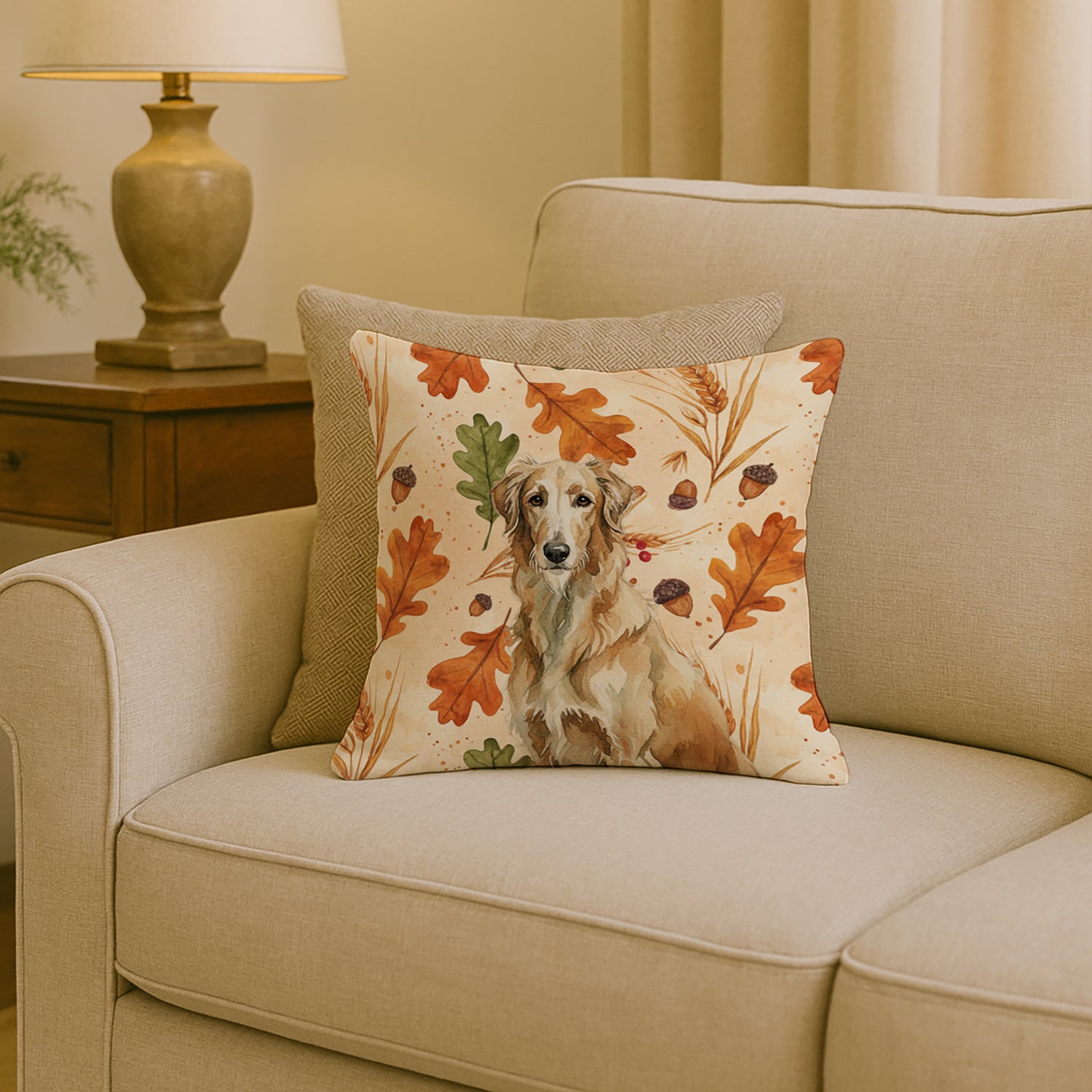 Throw Pillow featuring breed specific Scottish Deerhound artwork. Celebrate Thanksgiving with this Thanksgiving Pillow. Revitalize your outdoor or indoor living space with Caroline's Treasures 18" x 18" Fabric Decorative Pillow. With a generously sized dimension of approximately 18 inches by 18 inches, this pillow makes a comfortable and aesthetic addition to any seating area. Made from a unique, water-resistant material developed by Caroline's Treasures, the pillow sham is 100% polyester fabric that's durable and ready to weather any condition. Its vibrant, full-color artwork will not fade over time as it is dyed with color-fast dyes. Whether you place it on your patio furniture, porch, veranda, or indoor couch, its soft canvas fabric ensures a cozy experience. The pillow is handcrafted in the United States, featuring a sham created from three pieces of fabric and a polyester insert for enduring shape and overstuffed comfort. Despite being robustly built to endure the outdoors, it is as soft and snug as your favorite indoor cushions. Please note, as all this Caroline's Treasures pillows are handmade, sizes may vary slightly, adding to the charm of this unique decorative item.