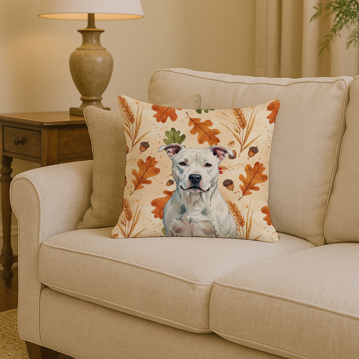 Throw Pillow featuring breed specific American Staffordshire Terrier artwork. Celebrate Thanksgiving with this Thanksgiving Pillow. Add a touch of vibrancy and comfort to your outdoor seating with Caroline's Treasures Fabric Decorative Pillow. Approximately 14 inches by 14 inches, this outdoor pillow is crafted to elevate the appeal of your patio furniture, infusing it with vivid color and artistic flair. The pillow includes a 100% Polyester Fabric sham filled with a quality pillow form to provide superior comfort. Innovatively made from this Caroline's Treasures brand new material, specifically woven for its water resistance, this pillow is designed for durability. The soft canvas fabric offers versatility in use, fit for your indoor couch or your outdoor patio, porch, or veranda. The fabric is dyed with colorfast dyes built for resilience against weather conditions, ensuring the pillow retains its beauty over time. Constructed by sewing three fabric pieces to create a sham, the polyester insert is then nestled inside to form the pillow, resulting in an overstuffed pillow that maintains its shape. Both the sham and the pillow insert are proudly made in the United States. As the pillows are handcrafted, there may be minor variations in size, further enhancing their unique charm. Experience comfort in style with Caroline's Treasures Fabric Decorative Pillow.