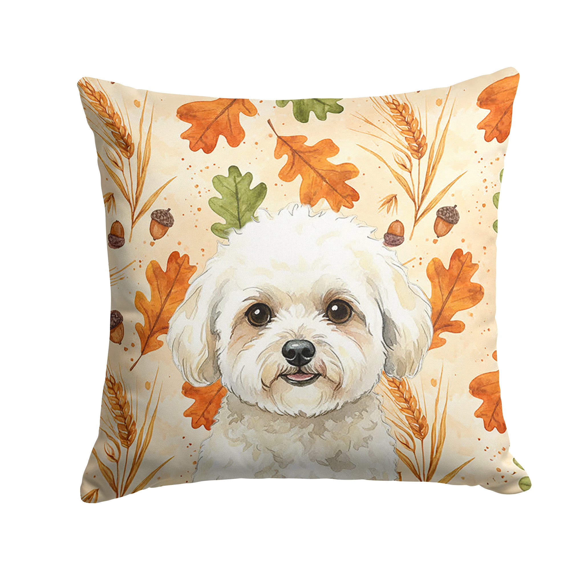 Throw Pillow featuring breed specific Bichon Frise artwork. Celebrate Thanksgiving with this Thanksgiving Pillow. Revitalize your outdoor or indoor living space with Caroline's Treasures 18" x 18" Fabric Decorative Pillow. With a generously sized dimension of approximately 18 inches by 18 inches, this pillow makes a comfortable and aesthetic addition to any seating area. Made from a unique, water-resistant material developed by Caroline's Treasures, the pillow sham is 100% polyester fabric that's durable and ready to weather any condition. Its vibrant, full-color artwork will not fade over time as it is dyed with color-fast dyes. Whether you place it on your patio furniture, porch, veranda, or indoor couch, its soft canvas fabric ensures a cozy experience. The pillow is handcrafted in the United States, featuring a sham created from three pieces of fabric and a polyester insert for enduring shape and overstuffed comfort. Despite being robustly built to endure the outdoors, it is as soft and snug as your favorite indoor cushions. Please note, as all this Caroline's Treasures pillows are handmade, sizes may vary slightly, adding to the charm of this unique decorative item.