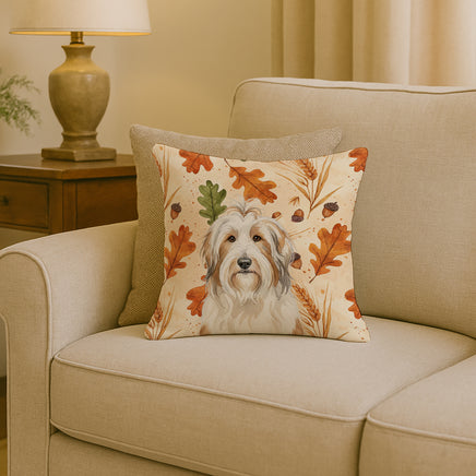 Throw Pillow featuring breed specific Bearded Collie artwork. Celebrate Thanksgiving with this Thanksgiving Pillow. Revitalize your outdoor or indoor living space with Caroline's Treasures 18" x 18" Fabric Decorative Pillow. With a generously sized dimension of approximately 18 inches by 18 inches, this pillow makes a comfortable and aesthetic addition to any seating area. Made from a unique, water-resistant material developed by Caroline's Treasures, the pillow sham is 100% polyester fabric that's durable and ready to weather any condition. Its vibrant, full-color artwork will not fade over time as it is dyed with color-fast dyes. Whether you place it on your patio furniture, porch, veranda, or indoor couch, its soft canvas fabric ensures a cozy experience. The pillow is handcrafted in the United States, featuring a sham created from three pieces of fabric and a polyester insert for enduring shape and overstuffed comfort. Despite being robustly built to endure the outdoors, it is as soft and snug as your favorite indoor cushions. Please note, as all this Caroline's Treasures pillows are handmade, sizes may vary slightly, adding to the charm of this unique decorative item.