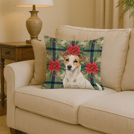 White and Tan Jack Russell Terrier Christmas PoinsettIas Throw Pillow