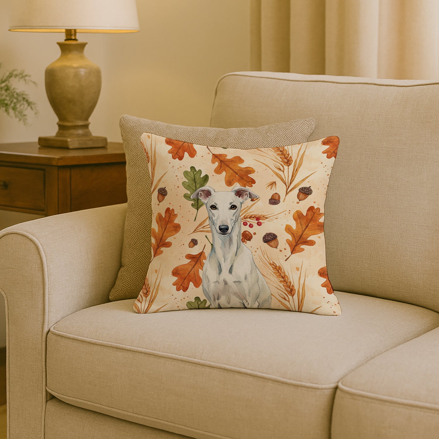 Throw Pillow featuring breed specific Greyhound artwork. Celebrate Thanksgiving with this Thanksgiving Pillow. Revitalize your outdoor or indoor living space with Caroline's Treasures 18" x 18" Fabric Decorative Pillow. With a generously sized dimension of approximately 18 inches by 18 inches, this pillow makes a comfortable and aesthetic addition to any seating area. Made from a unique, water-resistant material developed by Caroline's Treasures, the pillow sham is 100% polyester fabric that's durable and ready to weather any condition. Its vibrant, full-color artwork will not fade over time as it is dyed with color-fast dyes. Whether you place it on your patio furniture, porch, veranda, or indoor couch, its soft canvas fabric ensures a cozy experience. The pillow is handcrafted in the United States, featuring a sham created from three pieces of fabric and a polyester insert for enduring shape and overstuffed comfort. Despite being robustly built to endure the outdoors, it is as soft and snug as your favorite indoor cushions. Please note, as all this Caroline's Treasures pillows are handmade, sizes may vary slightly, adding to the charm of this unique decorative item.