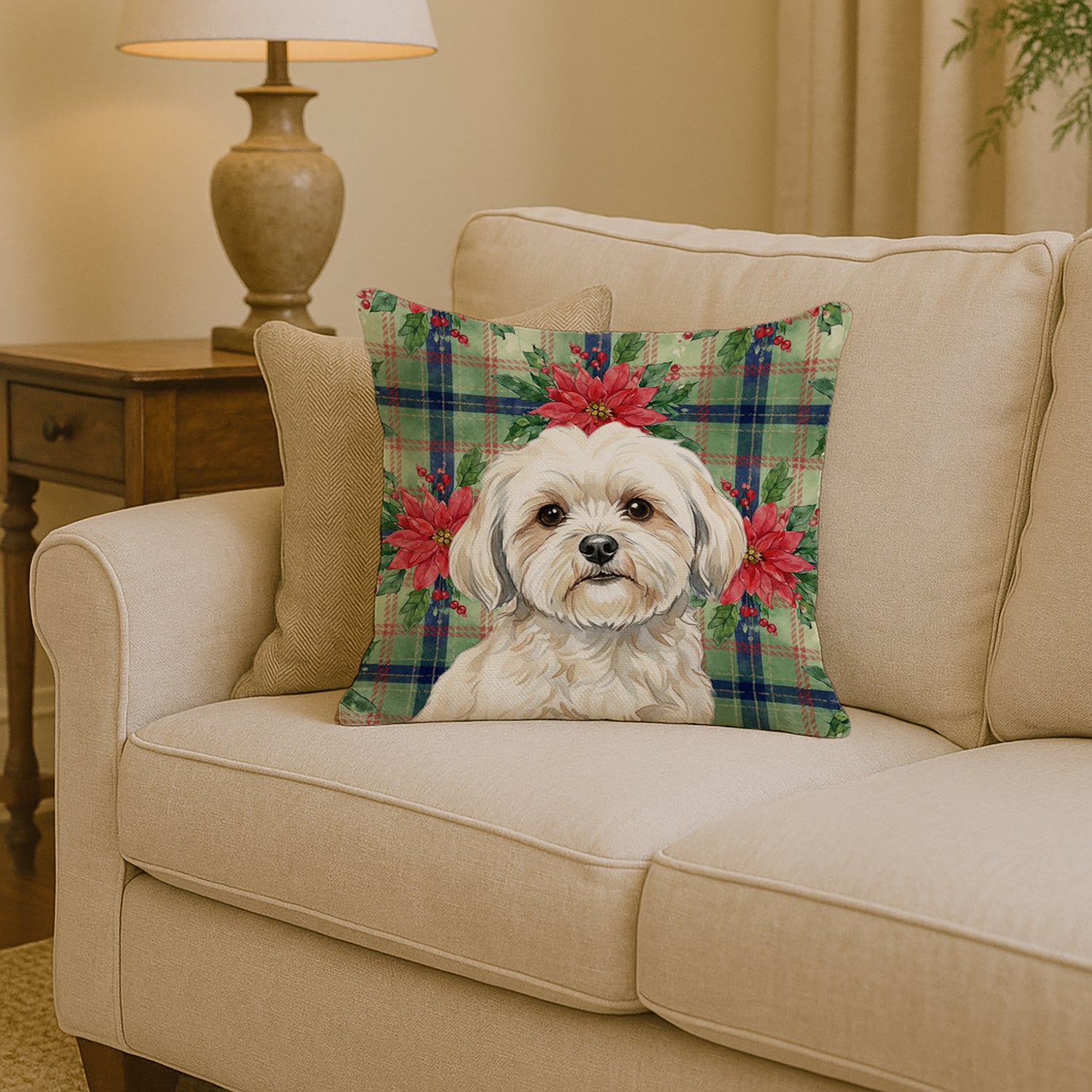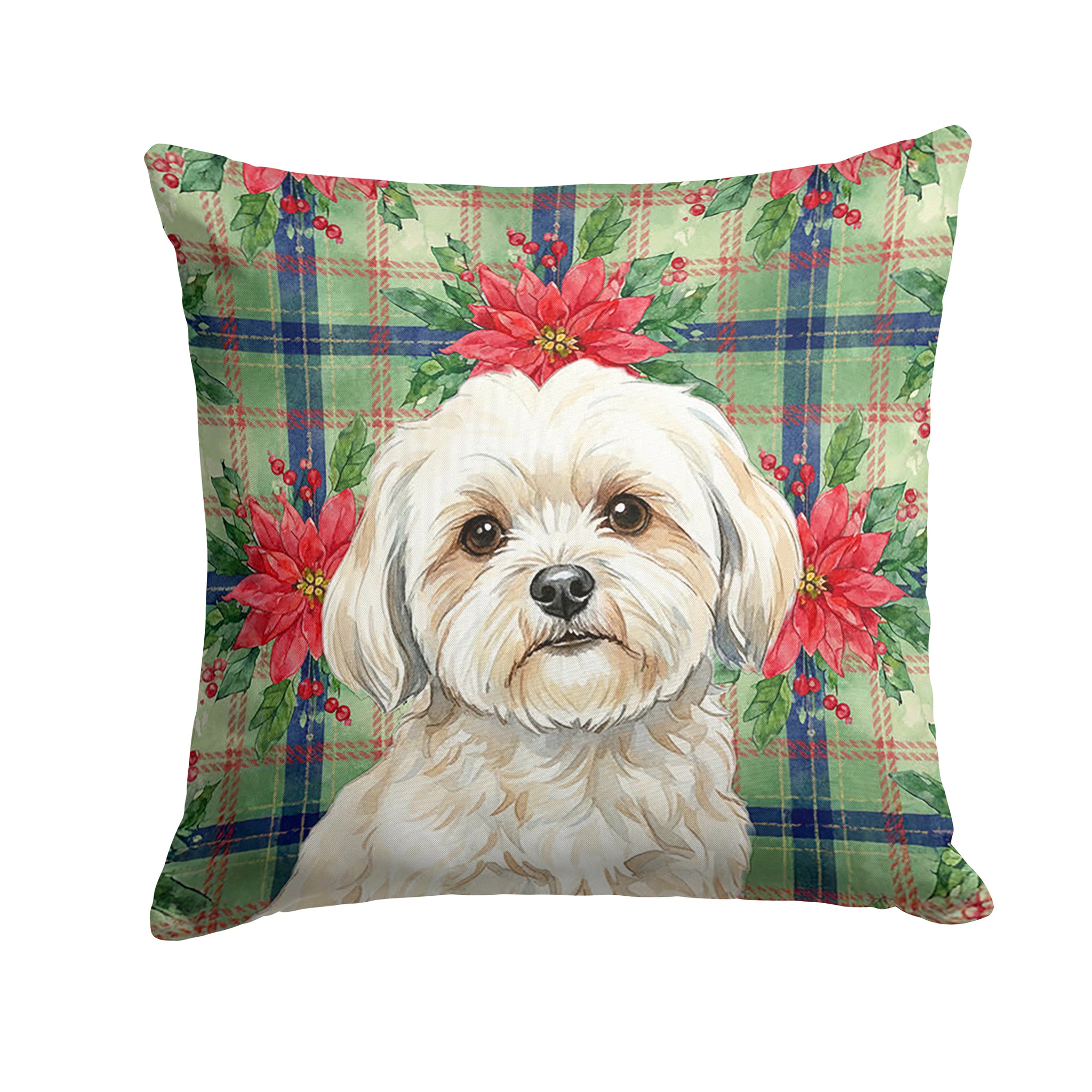 Throw Pillow featuring breed specific Lhasa Apso artwork. Celebrate Christmas with this Christmas Pillow. Add a touch of vibrancy and comfort to your outdoor seating with Caroline's Treasures Fabric Decorative Pillow. Approximately 14 inches by 14 inches, this outdoor pillow is crafted to elevate the appeal of your patio furniture, infusing it with vivid color and artistic flair. The pillow includes a 100% Polyester Fabric sham filled with a quality pillow form to provide superior comfort. Innovatively made from this Caroline's Treasures brand new material, specifically woven for its water resistance, this pillow is designed for durability. The soft canvas fabric offers versatility in use, fit for your indoor couch or your outdoor patio, porch, or veranda. The fabric is dyed with colorfast dyes built for resilience against weather conditions, ensuring the pillow retains its beauty over time. Constructed by sewing three fabric pieces to create a sham, the polyester insert is then nestled inside to form the pillow, resulting in an overstuffed pillow that maintains its shape. Both the sham and the pillow insert are proudly made in the United States. As the pillows are handcrafted, there may be minor variations in size, further enhancing their unique charm. Experience comfort in style with Caroline's Treasures Fabric Decorative Pillow.
