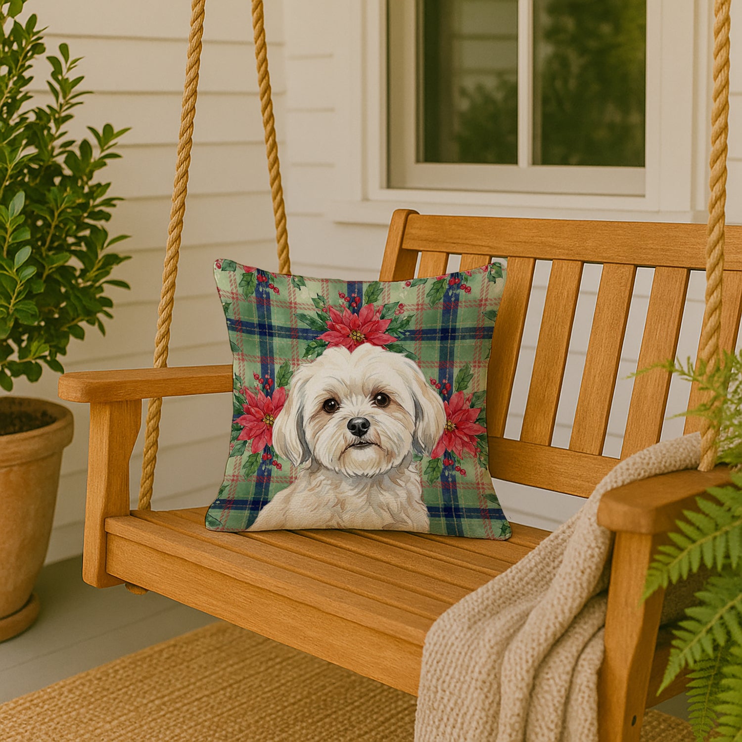 Throw Pillow featuring breed specific Lhasa Apso artwork. Celebrate Christmas with this Christmas Pillow. Revitalize your outdoor or indoor living space with Caroline's Treasures 18" x 18" Fabric Decorative Pillow. With a generously sized dimension of approximately 18 inches by 18 inches, this pillow makes a comfortable and aesthetic addition to any seating area. Made from a unique, water-resistant material developed by Caroline's Treasures, the pillow sham is 100% polyester fabric that's durable and ready to weather any condition. Its vibrant, full-color artwork will not fade over time as it is dyed with color-fast dyes. Whether you place it on your patio furniture, porch, veranda, or indoor couch, its soft canvas fabric ensures a cozy experience. The pillow is handcrafted in the United States, featuring a sham created from three pieces of fabric and a polyester insert for enduring shape and overstuffed comfort. Despite being robustly built to endure the outdoors, it is as soft and snug as your favorite indoor cushions. Please note, as all this Caroline's Treasures pillows are handmade, sizes may vary slightly, adding to the charm of this unique decorative item.