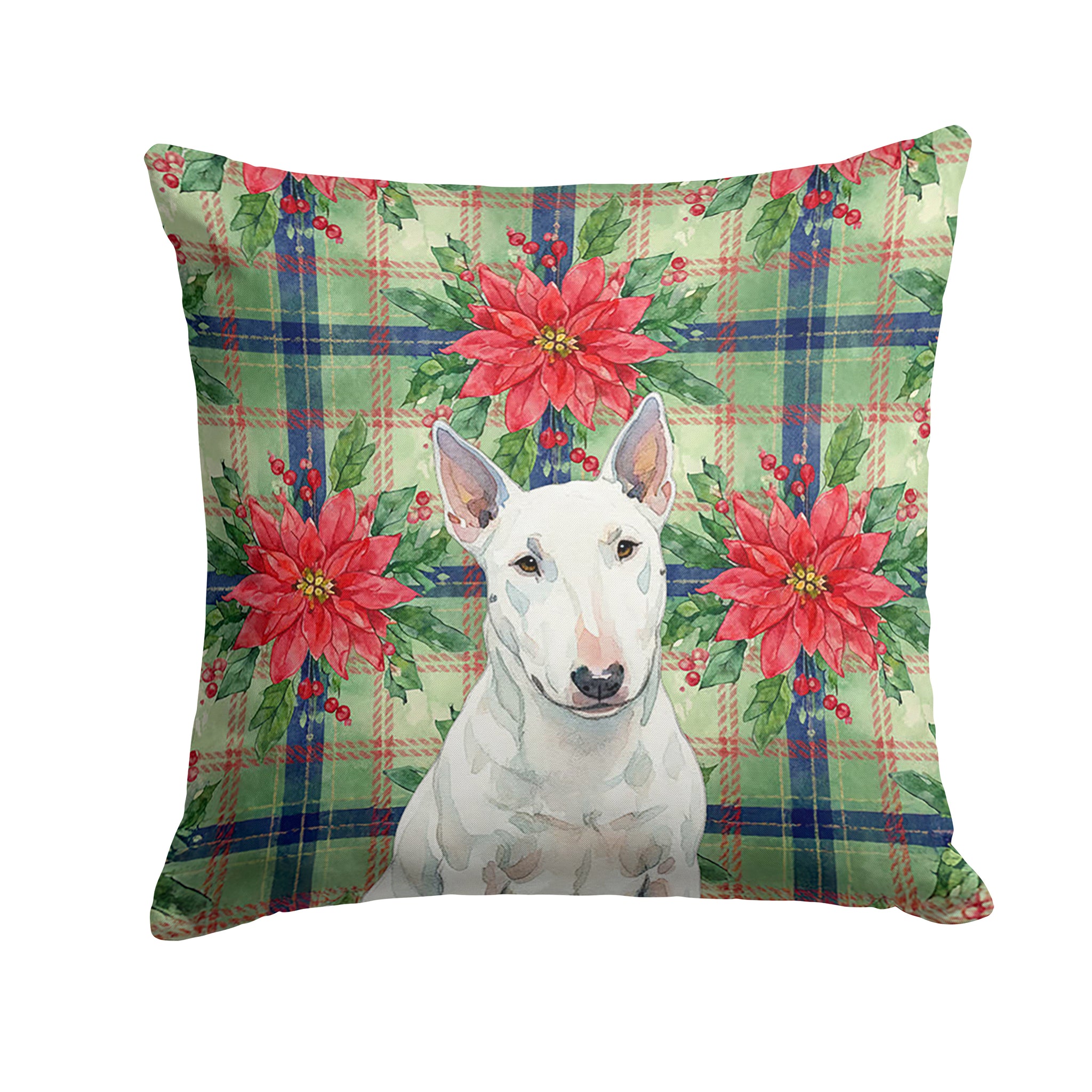 Throw Pillow featuring breed specific Miniature Bull Terrier artwork. Celebrate Christmas with this Christmas Pillow. Add a touch of vibrancy and comfort to your outdoor seating with Caroline's Treasures Fabric Decorative Pillow. Approximately 14 inches by 14 inches, this outdoor pillow is crafted to elevate the appeal of your patio furniture, infusing it with vivid color and artistic flair. The pillow includes a 100% Polyester Fabric sham filled with a quality pillow form to provide superior comfort. Innovatively made from this Caroline's Treasures brand new material, specifically woven for its water resistance, this pillow is designed for durability. The soft canvas fabric offers versatility in use, fit for your indoor couch or your outdoor patio, porch, or veranda. The fabric is dyed with colorfast dyes built for resilience against weather conditions, ensuring the pillow retains its beauty over time. Constructed by sewing three fabric pieces to create a sham, the polyester insert is then nestled inside to form the pillow, resulting in an overstuffed pillow that maintains its shape. Both the sham and the pillow insert are proudly made in the United States. As the pillows are handcrafted, there may be minor variations in size, further enhancing their unique charm. Experience comfort in style with Caroline's Treasures Fabric Decorative Pillow.