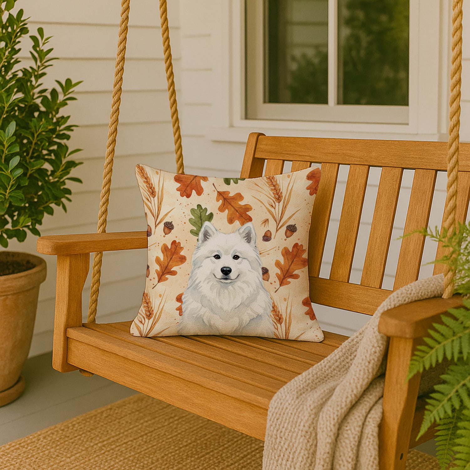 Throw Pillow featuring breed specific Samoyed artwork. Celebrate Thanksgiving with this Thanksgiving Pillow. Revitalize your outdoor or indoor living space with Caroline's Treasures 18" x 18" Fabric Decorative Pillow. With a generously sized dimension of approximately 18 inches by 18 inches, this pillow makes a comfortable and aesthetic addition to any seating area. Made from a unique, water-resistant material developed by Caroline's Treasures, the pillow sham is 100% polyester fabric that's durable and ready to weather any condition. Its vibrant, full-color artwork will not fade over time as it is dyed with color-fast dyes. Whether you place it on your patio furniture, porch, veranda, or indoor couch, its soft canvas fabric ensures a cozy experience. The pillow is handcrafted in the United States, featuring a sham created from three pieces of fabric and a polyester insert for enduring shape and overstuffed comfort. Despite being robustly built to endure the outdoors, it is as soft and snug as your favorite indoor cushions. Please note, as all this Caroline's Treasures pillows are handmade, sizes may vary slightly, adding to the charm of this unique decorative item.