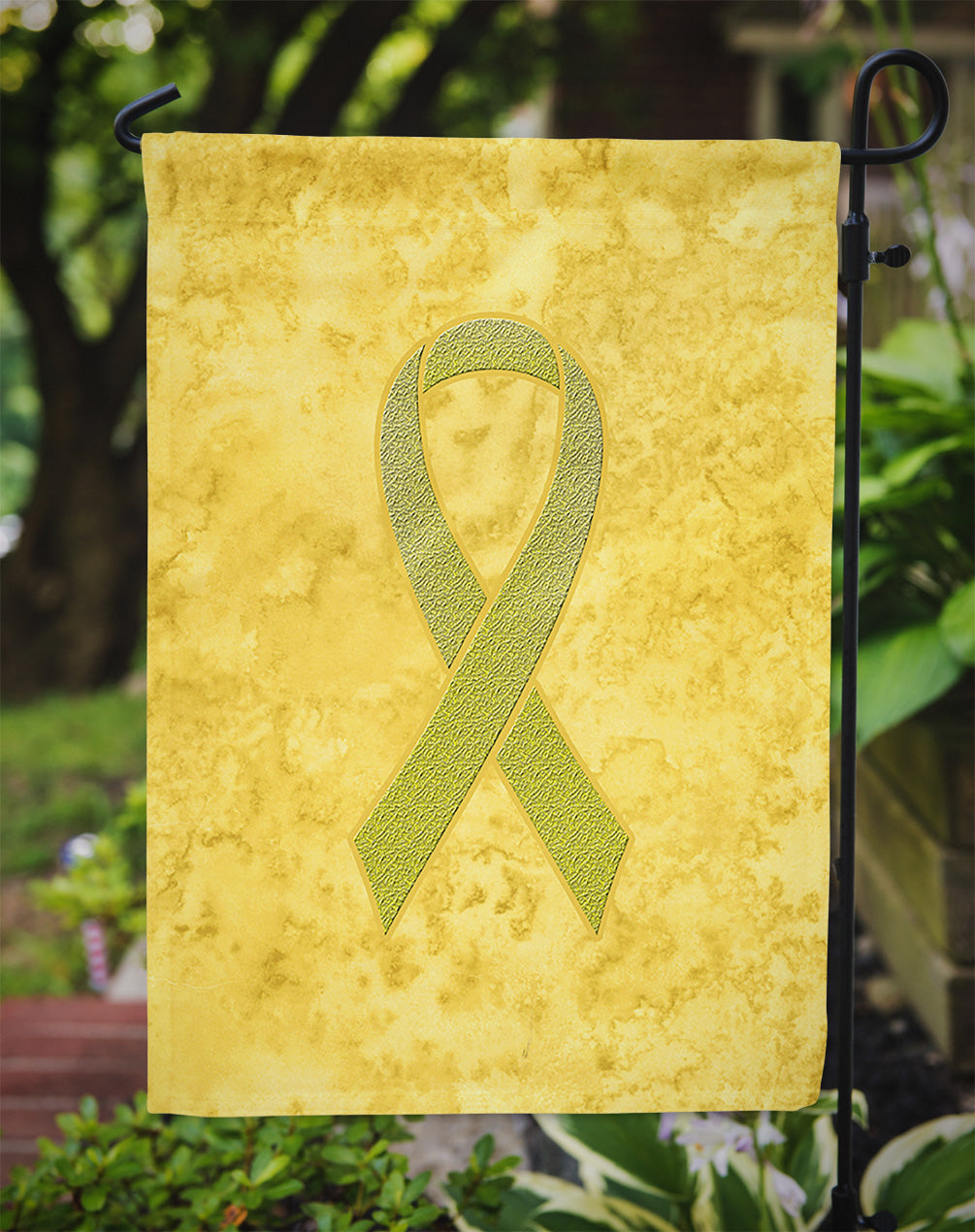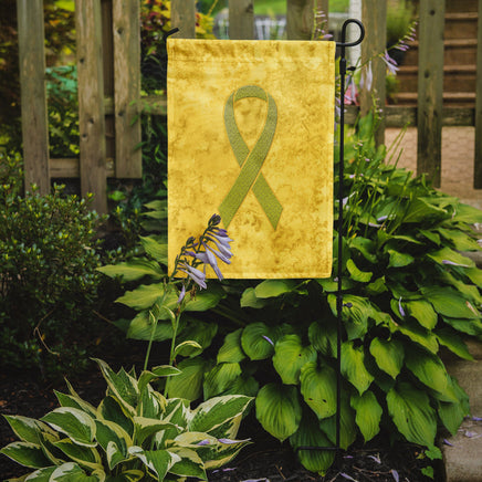 Decorate your space with Caroline's Treasures Yellow Ribbon for Sarcoma, Bone or Bladder Cancer artwork on a Garden Flag. Enhance the beauty of your garden, patio, or yard with Caroline's Treasures Decorative Garden Flag, proudly made in the USA. Crafted from two pieces of thick, double-sided polyester fabric, this 2-ply garden flag is designed to withstand various weather conditions, making it water-resistant and weatherproof. Featuring correctly readable words on both sides, this garden flag offers a delightful visual experience from any angle. With its heavier weight, it stands out among other garden flags, ensuring stability and durability even in wind, rain, and snow. Measuring approximately 11 1/4 inches by 15 1/2 inches, this flag allows you to personalize your outdoor decor. It comes with a 1 1/2-inch sleeve sewn in, allowing easy attachment to any standard garden flag stand or garden size porch hanger (sold separately). Make a statement in your outdoor space with Caroline's Treasures Decorative Garden Flag, a vibrant and high-quality flag that adds color and personality to your surroundings. Proudly made in the USA, it's a symbol of quality craftsmanship and attention to detail.